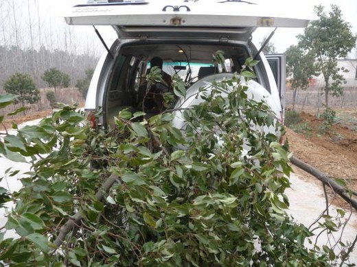 車中另外兩人動作快,停了車就往車下跳,我一時反應不及,站在路邊納悶他們的舉動。他們二人很快地檢視被剷除的樹木,其中挑出三棵還有希望存活的香樟樹,迅速搬上車來,運回園區。三個大男人,像孩子般雀躍,路旁農婦都不禁回頭探望。