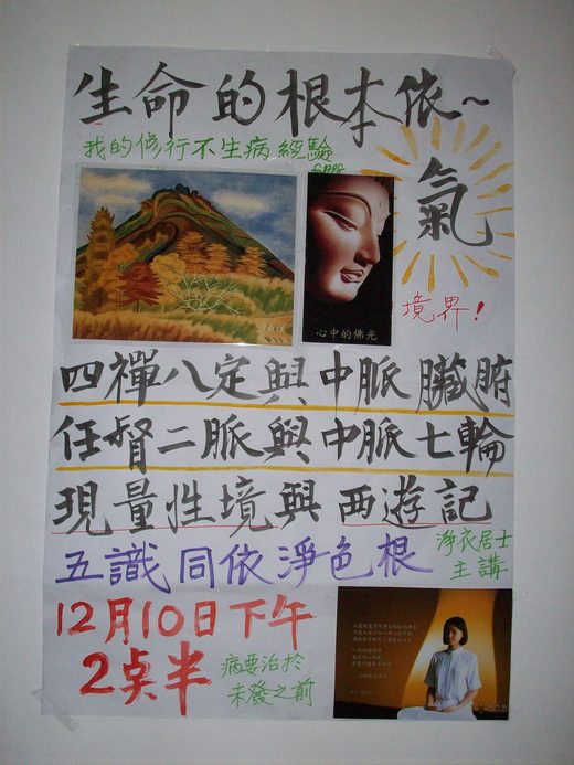 預訂講題:1. 我的修行不生病經驗(自1998 迄今) …生命的根本依~氣!