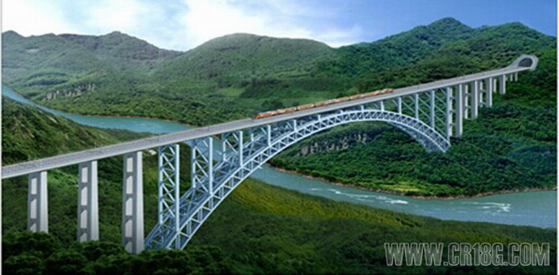 9,大瑞铁路怒江大桥 490米 云南龙陵县 准备中 钢+混凝土结构 世界最大铁路拱桥 桥上建4线火车站,桥面高197米(规划图)