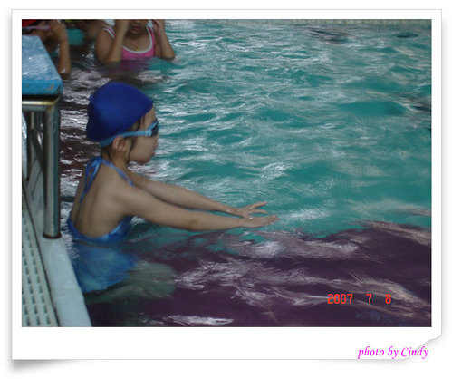 其實游泳班有發紅色的泳帽,這樣辨識學員比較容易,但她就是不肯戴,說是跟她的衣服不配。