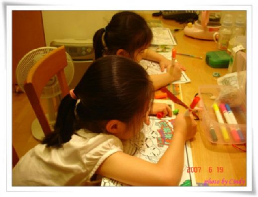 除了姐姐看書,她比較沒法配合外(坐不住),