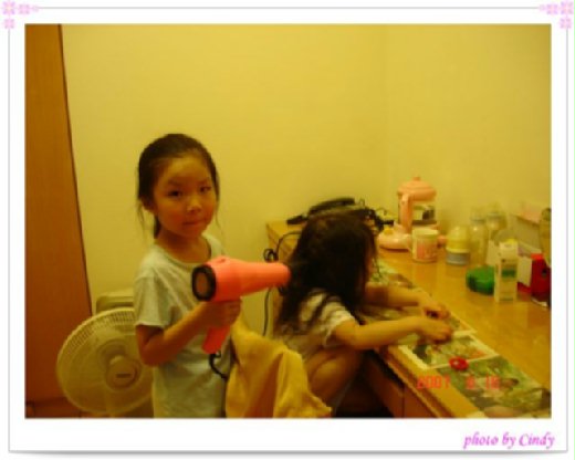 吹風機,冷熱風可以調整,把溫度降到最低,讓姐姐不會不小心燙到妹妹。