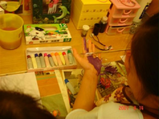 不過,小朋友就只愛一直往手掌上塗水彩,