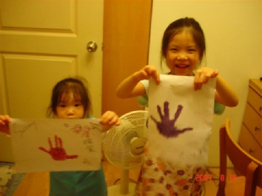 記得我們小時候美勞課也玩過這種遊戲.你若把孩子的小掌印掃瞄存檔.將來他們長大了再比對.一定很有趣.要是頂嘴吵架.你可以調手印檔案說 : " 老媽從你這麼小辛苦把你養大.是要你來和我吵的嗎 ? " 保證孩子會低頭. 哈哈 ! 以上胡說八道啦 ! - 1樓.2007/08/22 13:27^^