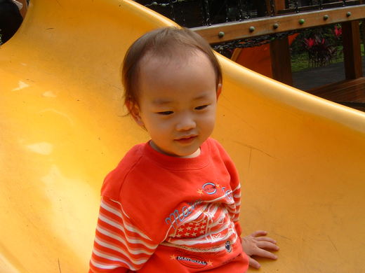 照片上的孩子是媽媽帶的小孩,我們都叫他小胖弟,這張是帶他去公園玩溜滑梯時拍下來的,小小的臉上漾著純真的微笑,好可愛啊!一直都很喜歡小孩子,雖然有時常常吵鬧,但看到他們天真的臉龐,就覺得很開心˙ˇ˙