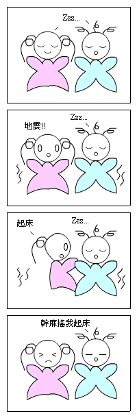 以前小小地震我都會醒來,前幾天的地震我竟然一點感覺都沒有耶,所以當然是睡死,隔天知道有地震還一頭霧水,這是我第一次對地震完全沒感覺@@"