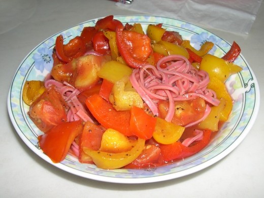 由於麵條很多,我分兩次煮掉,第一次加點青菜跟芝麻醬拌一拌吃掉;第二次加上番茄跟彩色青椒煮成蕃茄麵。麵條的味道...就是跟一般的麵條差不多,但是視覺上的效果很特別。