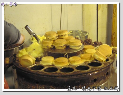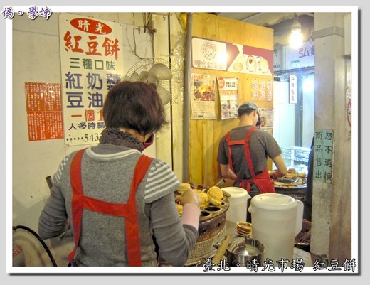 某天逛到晴光市場看到賣紅豆餅的攤位旁排滿著人,再看到那薄皮多餡的紅豆餅也跟著排隊,這算是比較大顆的紅豆餅,而且上下蓋子都有滿滿的內餡,不像有些紅豆餅只有單邊有餡另一邊加上空蓋子,感覺上比較便宜又大碗。