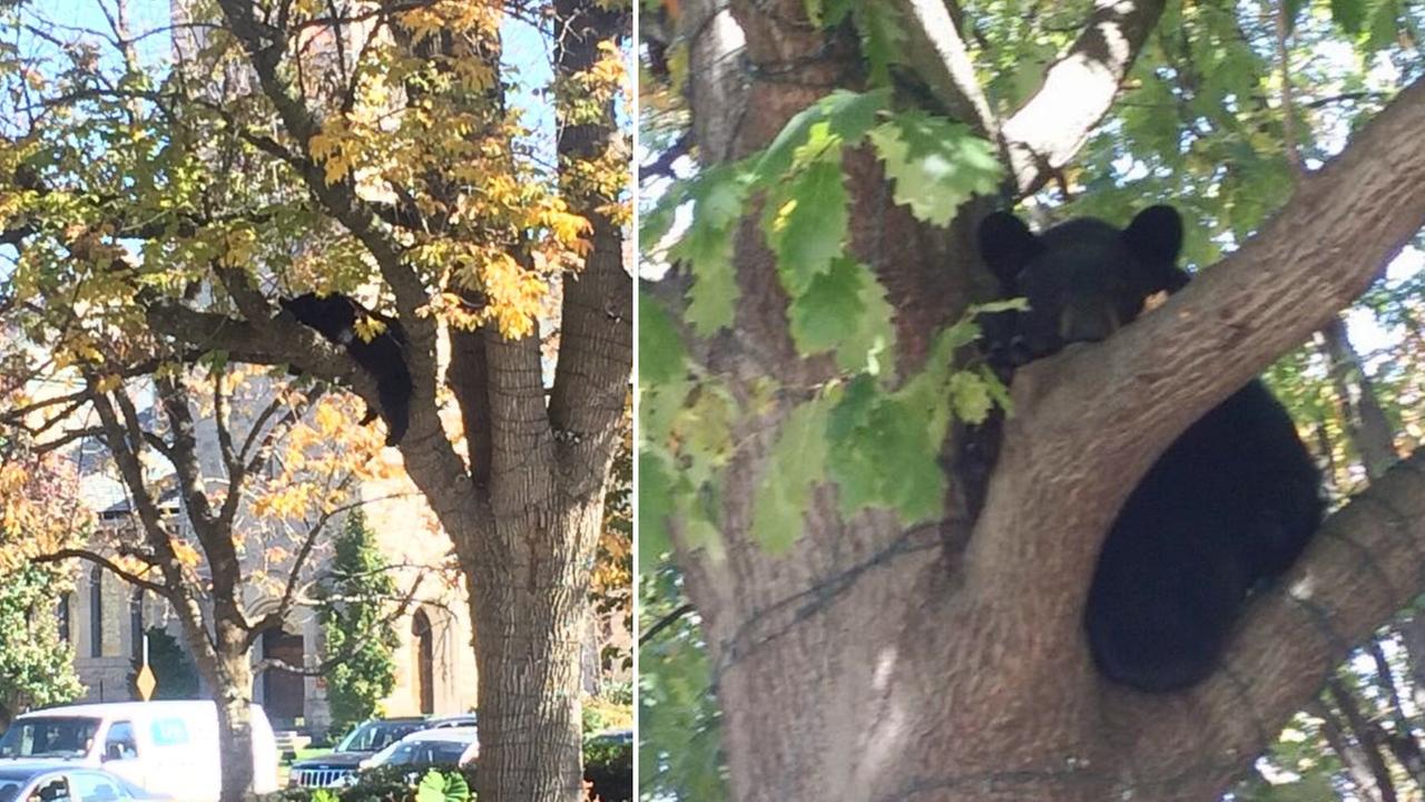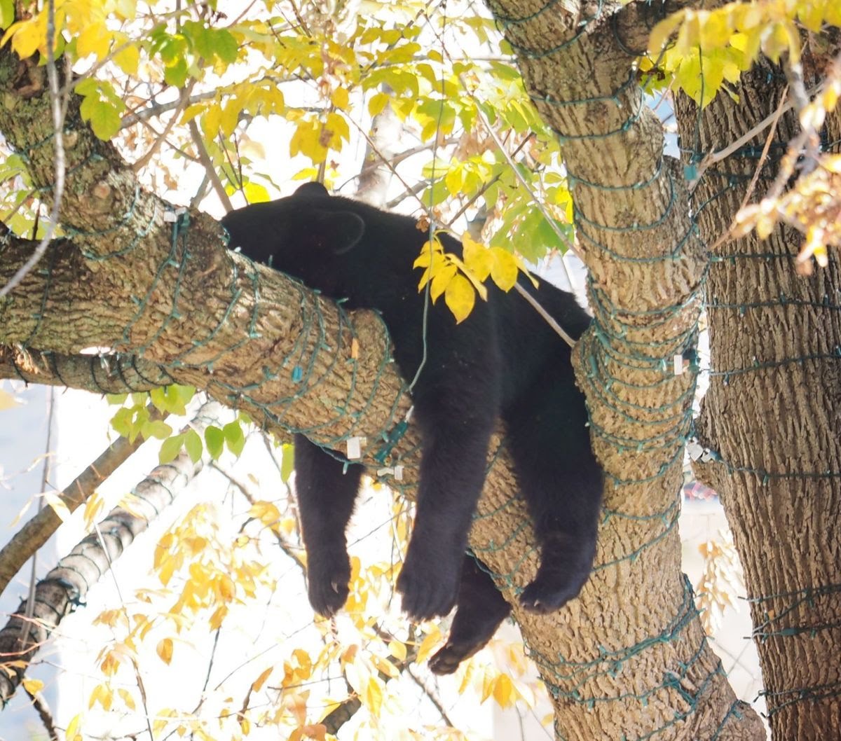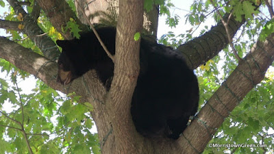 在 Morristown 的市中心有一個公園叫 The Green,有一次一隻頑皮亂跑的小熊,迷路了,跑到公園裏,看到一堆人,嚇壞了,趕緊往樹上爬,結果下不來。後來是公園管理處在它身上射了一針麻醉劑才將它救下來。