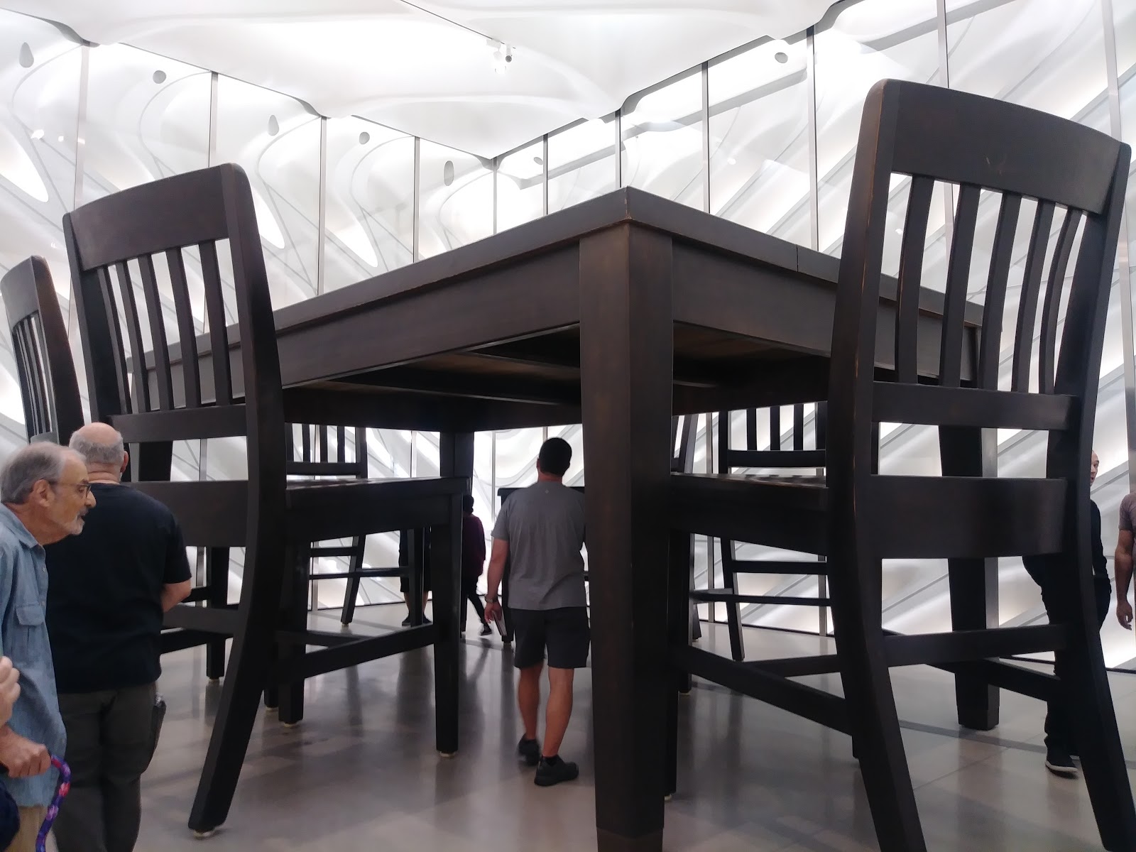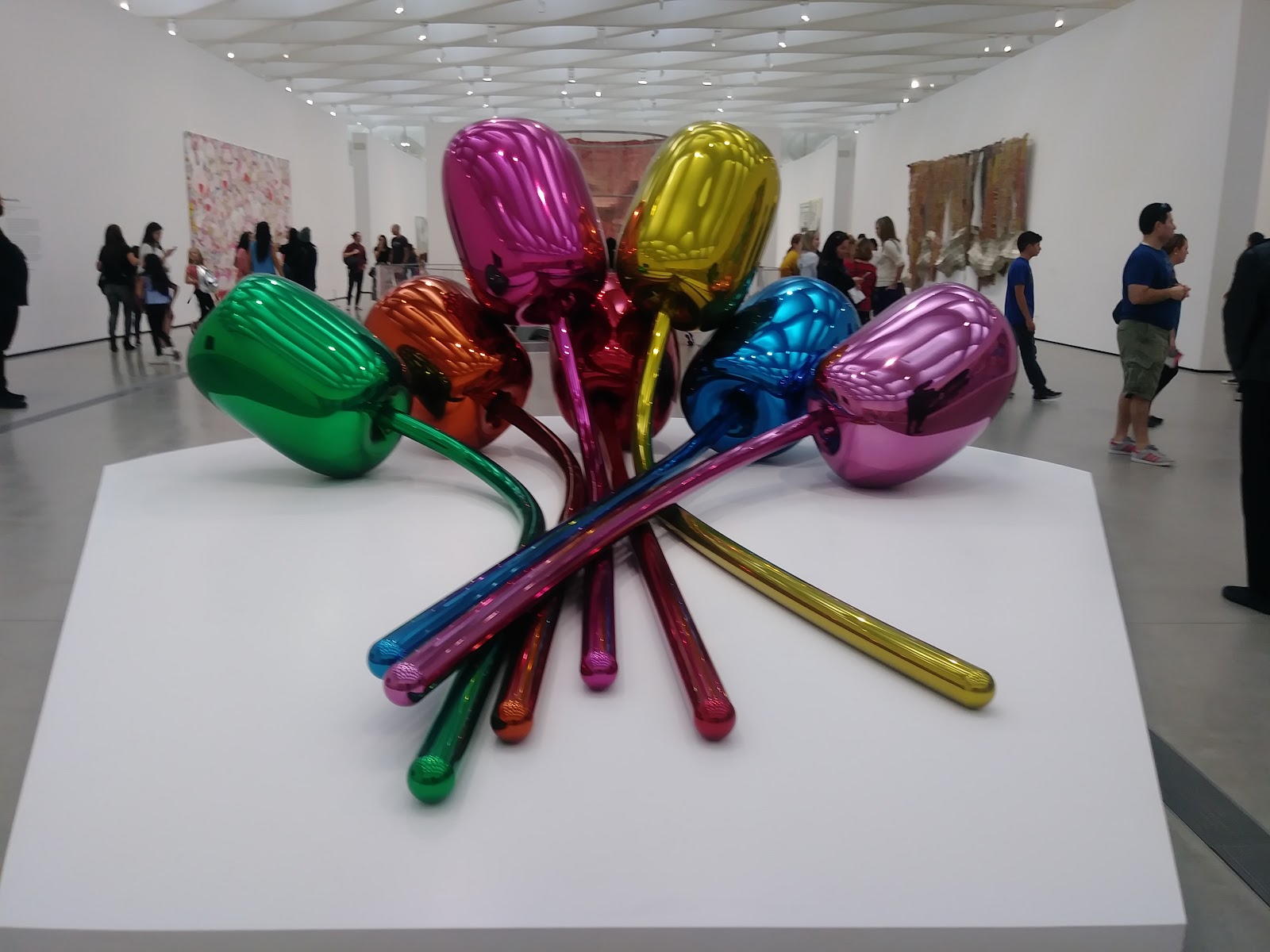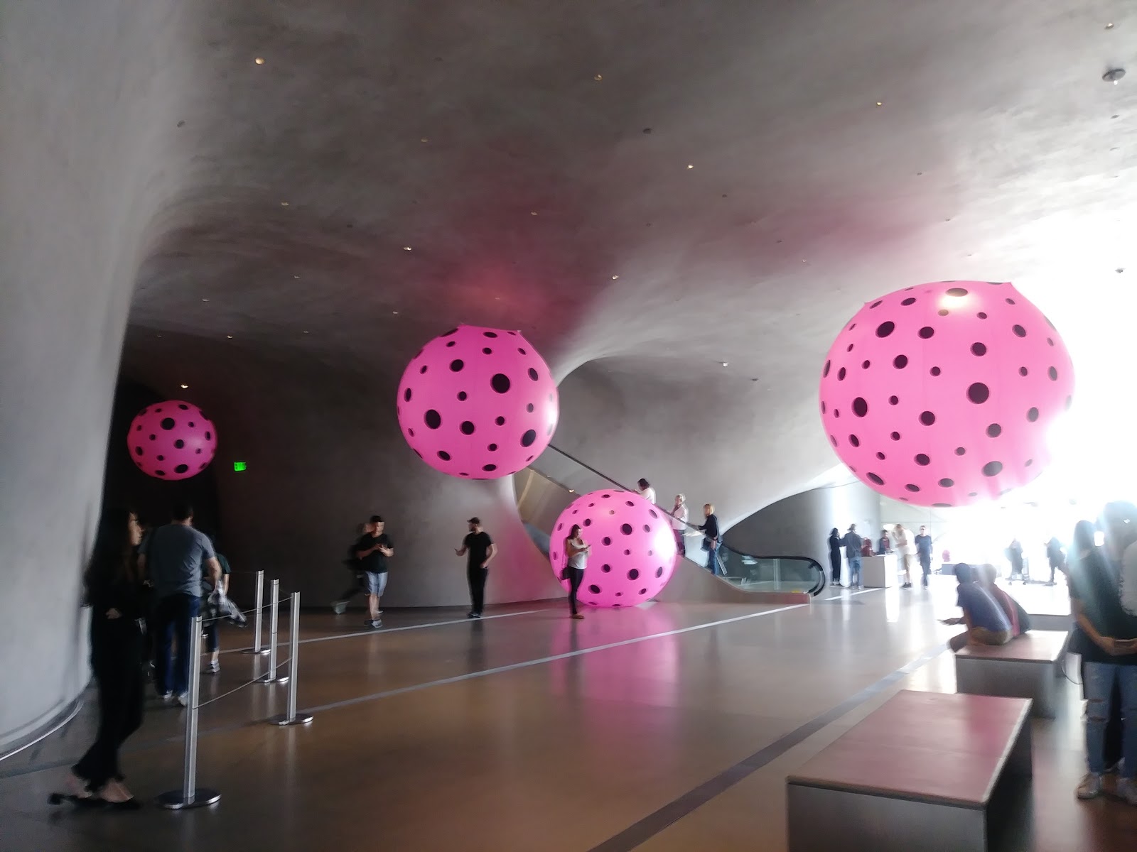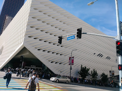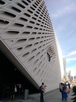 The Broad 是現代博物館,收藏近2000幅戰後藝術家的作品,包括 Cindy Sherman,Jeff Koons,Roy Lichtensteinn 和 Andy Warhol 等。在我們去參觀的其間,正好有草間彌生 Yayoi Kusama 的裝置藝術特展(10/21/2017 - 1/1/2018)無限鏡屋 infinity Mirrored Room。可惜這個特展太熱門了,票都賣光了,我們無緣進去裡面深入其“鏡”,只好等看看有沒有機會參觀以後的巡迴展。