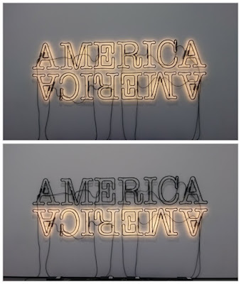 除了有名的草間彌生,看看其他當代藝術家的創作,也是蠻有意思的。現代藝術往往打破我們對“美”的認知,有時非常的寫實,生活週遭事物都能成為藝術的題材,例如汽球,沙發,霓虹燈,錫箔紙等等,甚至連人上大號的圖像都能列入畫作裡。當我們在參觀這些現代藝術作品時,還真的需要用超越世俗和傳統的觀點來欣賞,否則真的無法理解,讓我們把視野放寛廣些吧!