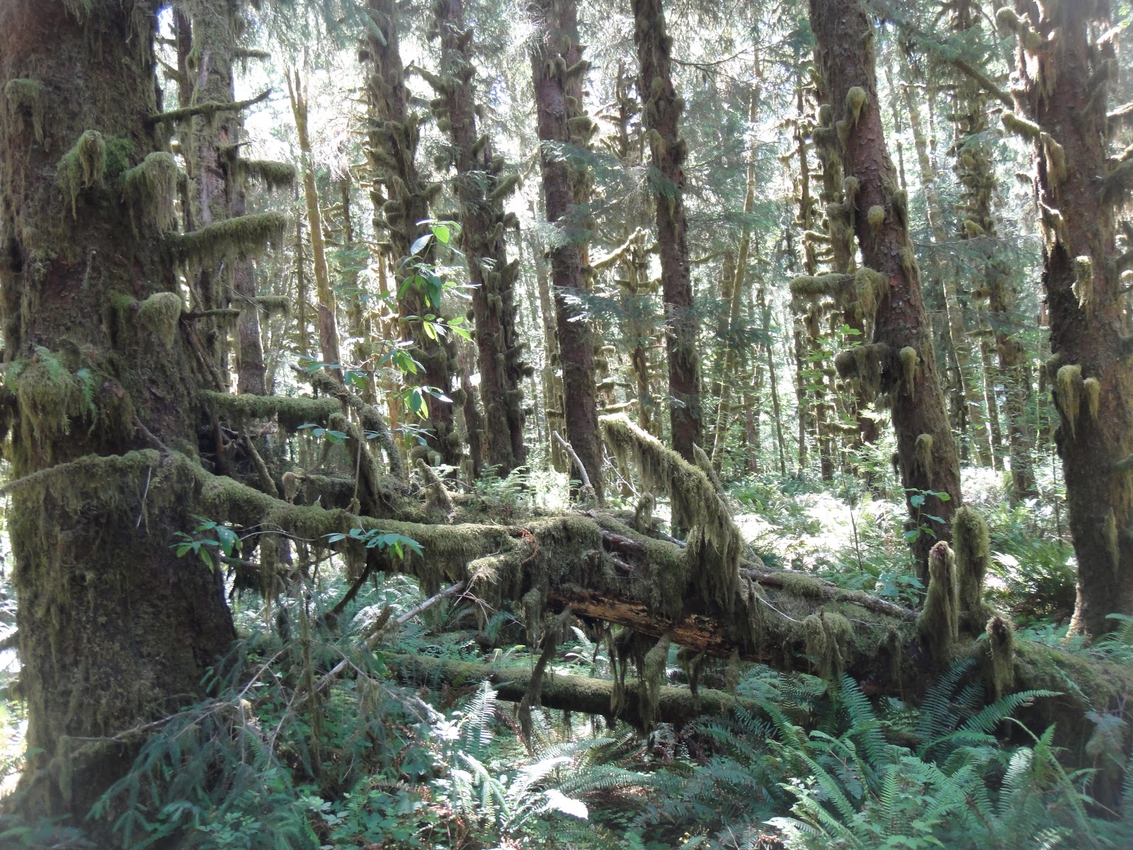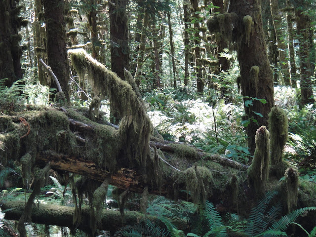 奧林匹克國家公園有三個溫帶雨林區,Hoh,Queets,和 Quinault,而 Quinault 是全美國最潮濕的地區,平均年雨量是150英吋(3800公釐)。因為全年潮溼,樹木又高大,許多曬不到太陽的樹枝與樹幹都長滿了厚厚的青苔。溫帶雨林和熱帶雨林不同,這𥚃大多是針葉林,並且是冬暖夏涼。即使是7月份,在這漫步我們還得穿上薄外套呢。