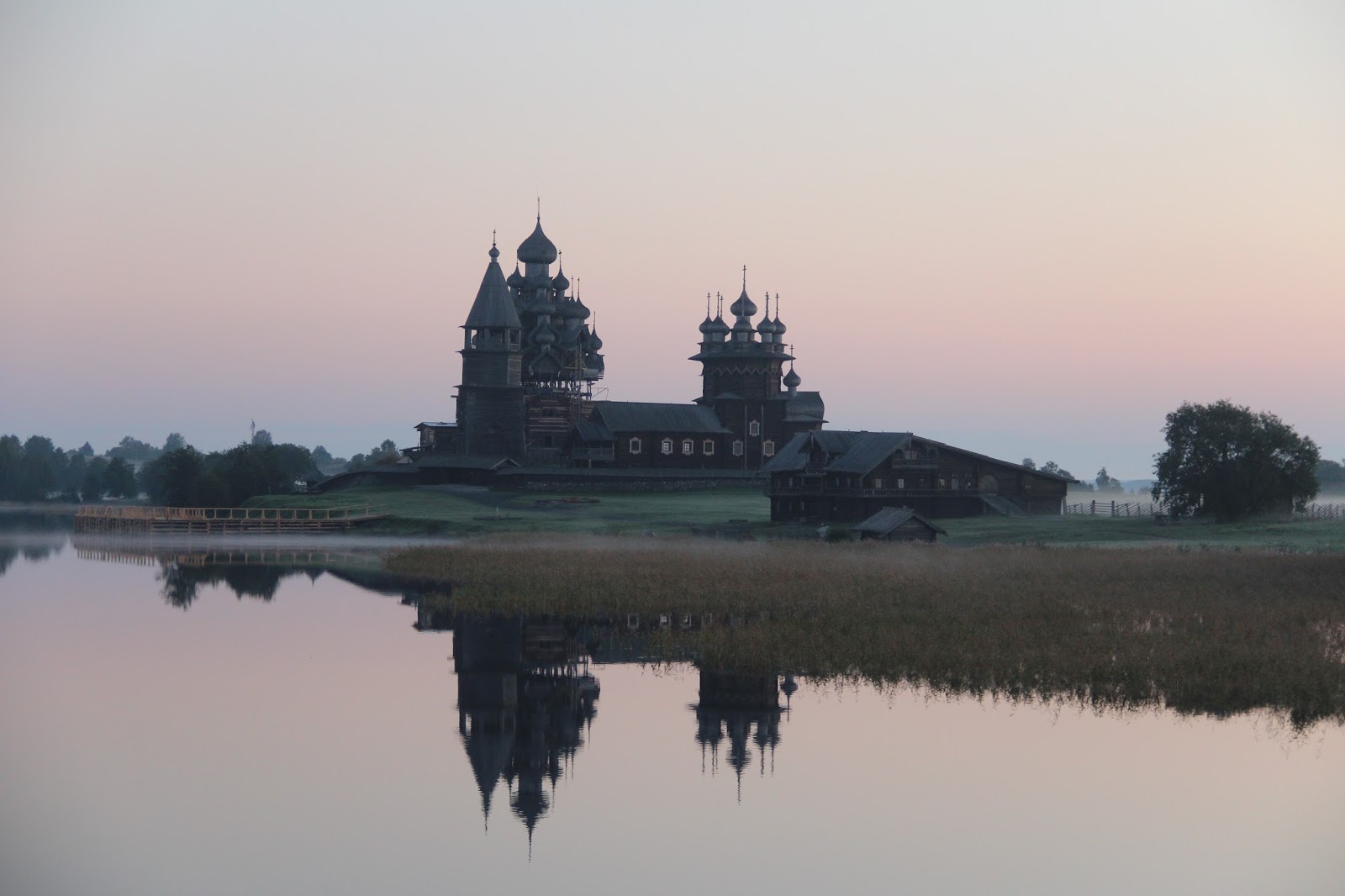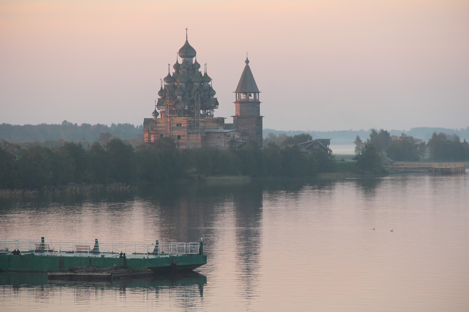 基日島是個交通極不方便,偏遠的小島,每天只有兩班的船隻從聖彼得堡開到基日島,除非參加河輪辦的旅程,冬天時也只能坐直升機或雪橇。這特別的世界遺產建築,雖然建造人也已經無從考查,卻讓我們一窺古人建築的奧妙。大教堂在1980s年代就開始維修,直到如今還在整修當中,要做成和古人一模一樣的功夫,實在不易,希望它能好好的被保存下來。