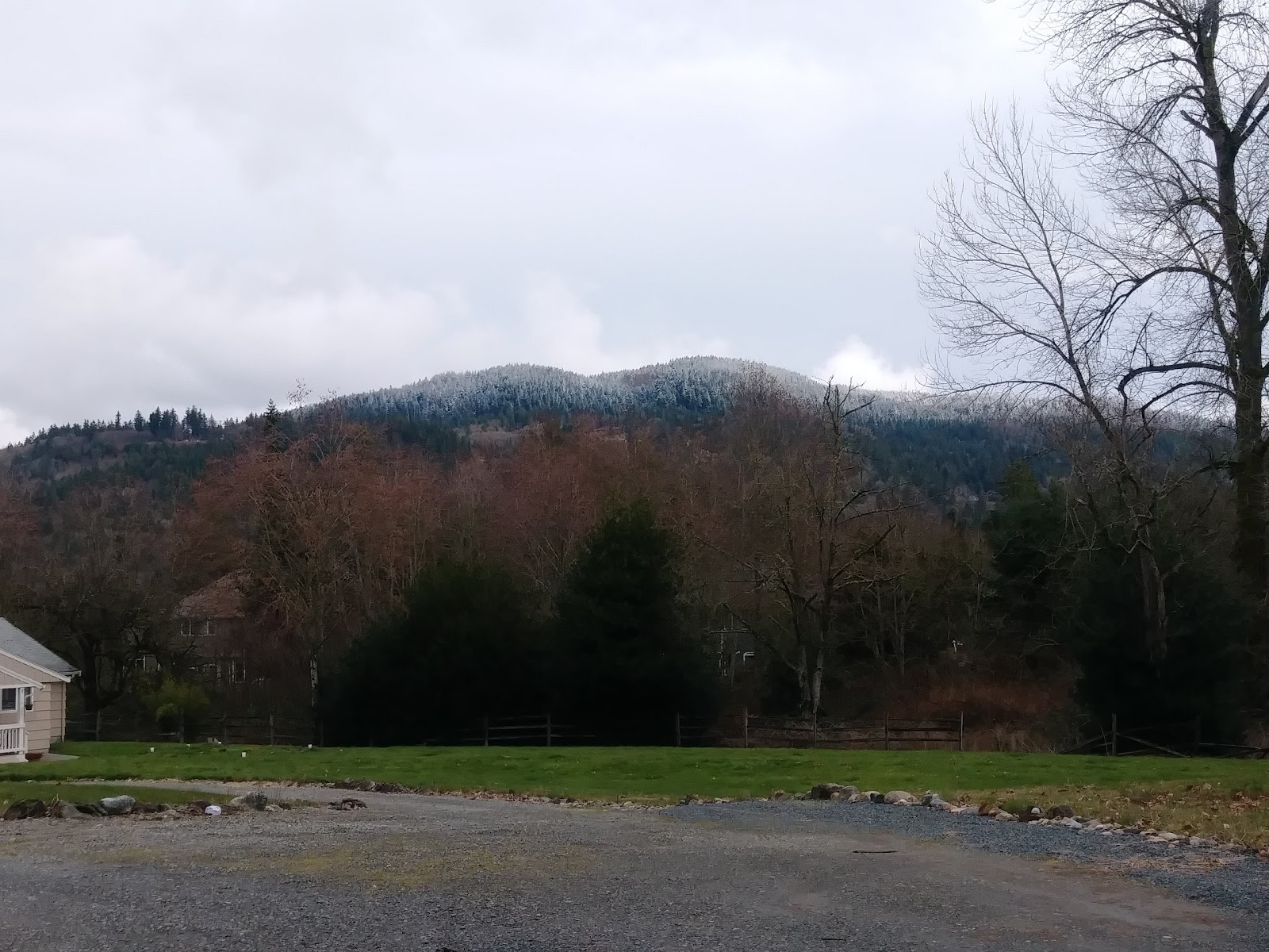 昨天山頭還積著雪,今天放晴都融了。