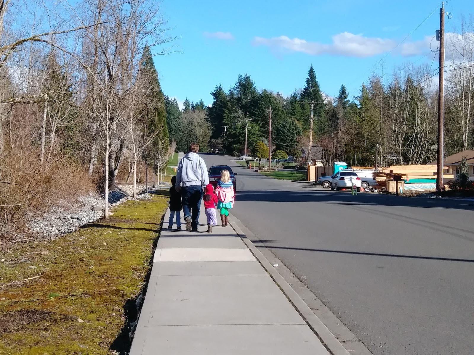 天氣好,父親也帶著孩子出來散步。