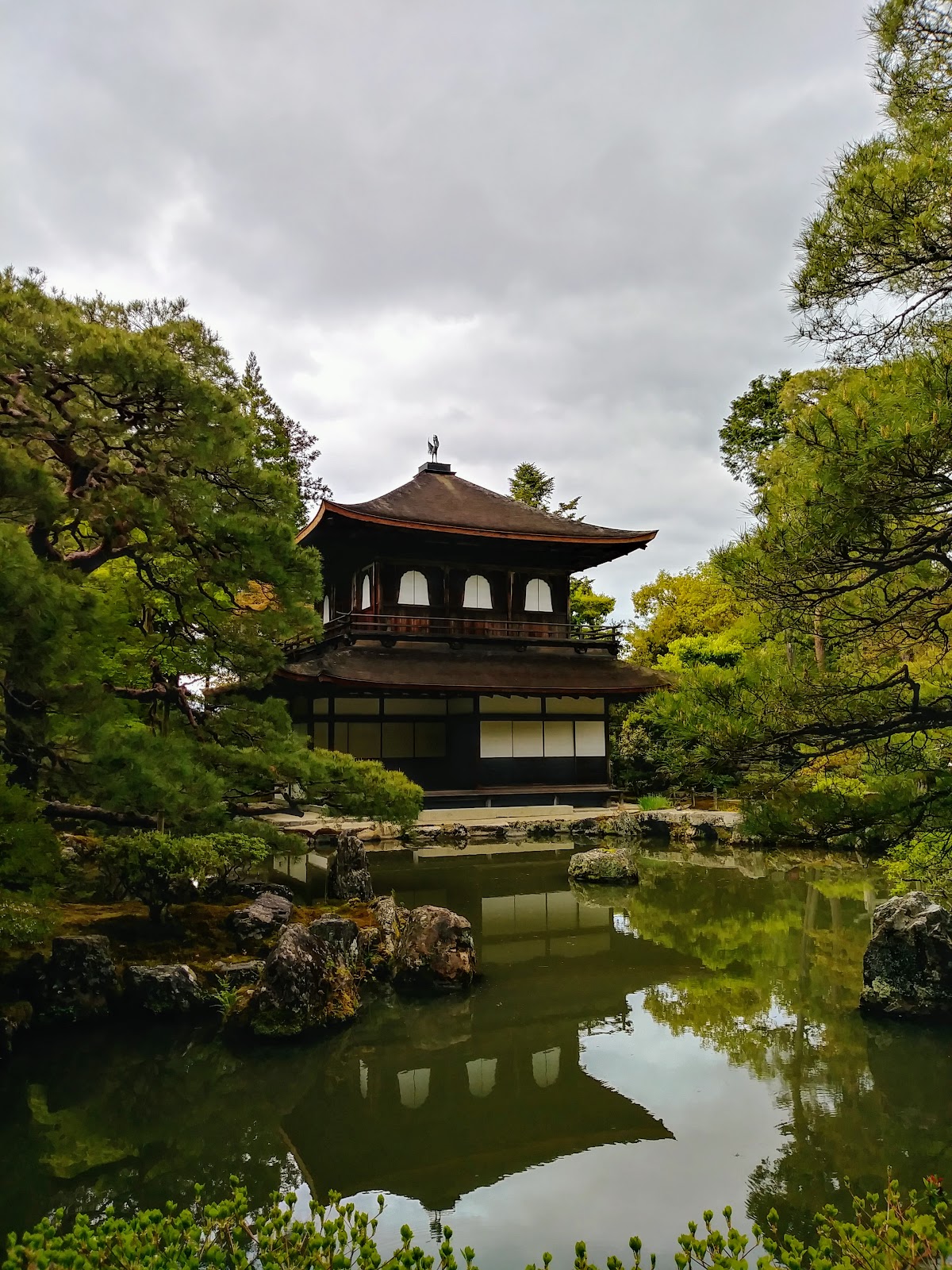 銀閣寺並不像金閣寺似的金壁輝煌,並沒有銀箔的包裝,但是有隻銀色的公雞在屋頂上,與金閣寺的金雞相互輝映。
