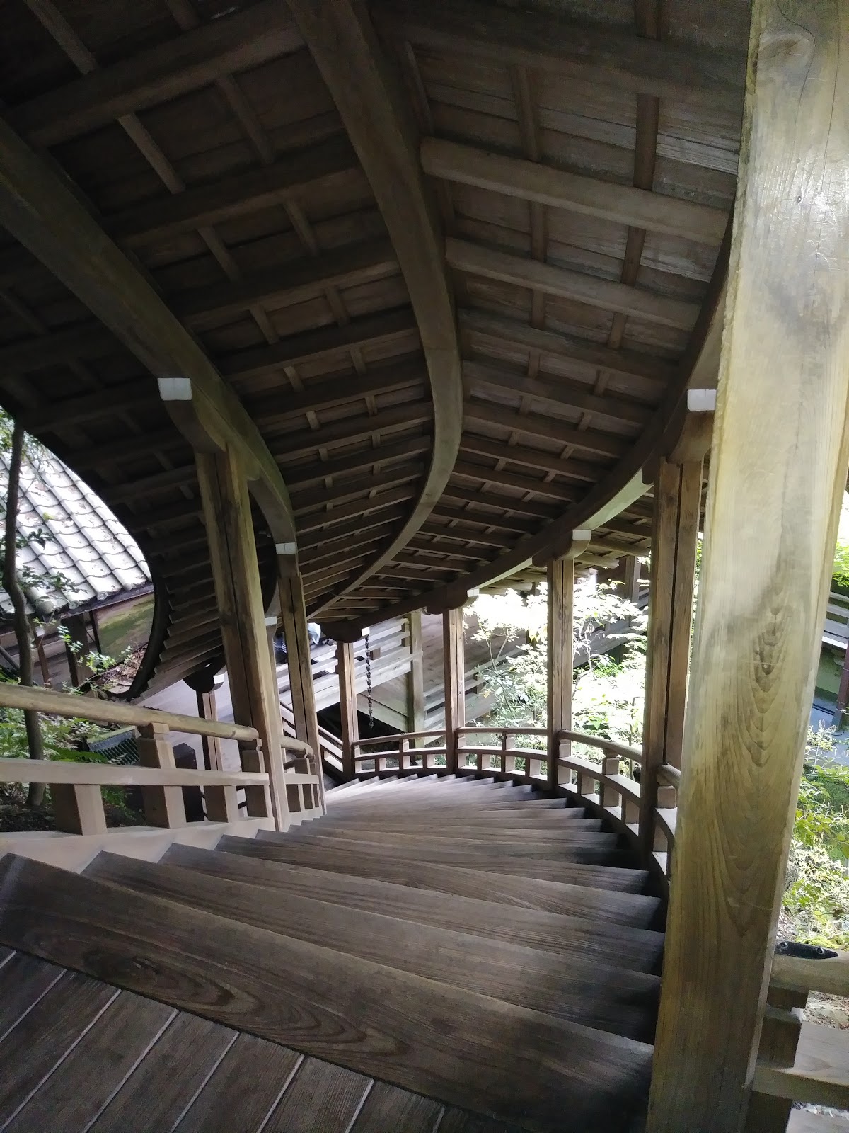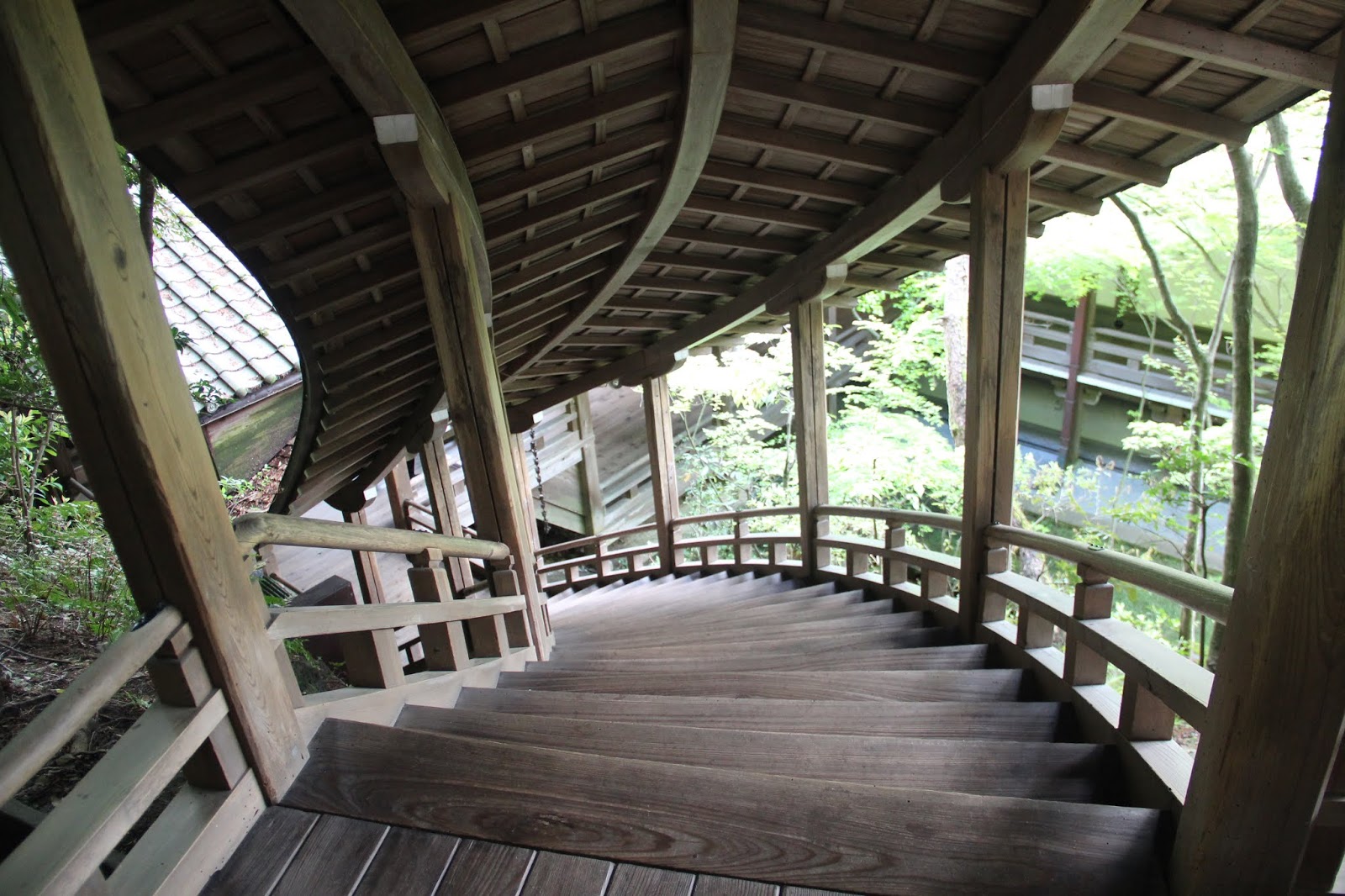 殿宇之間由迴廊相連接, 稱之為「臥龍廊」。由於「臥龍廊」是沿著山的斜面而建的,走在「臥龍廊」上,彷彿是行走在龍的身體裏,非常奇妙的體驗。