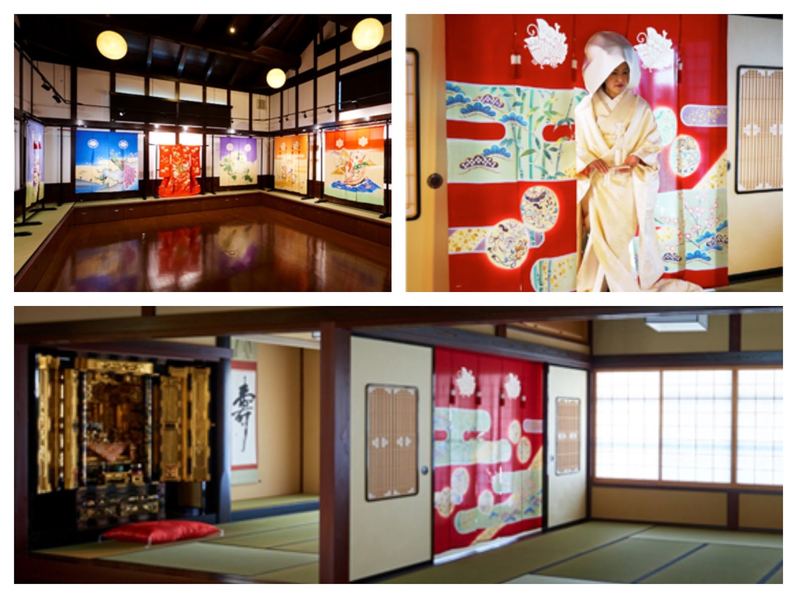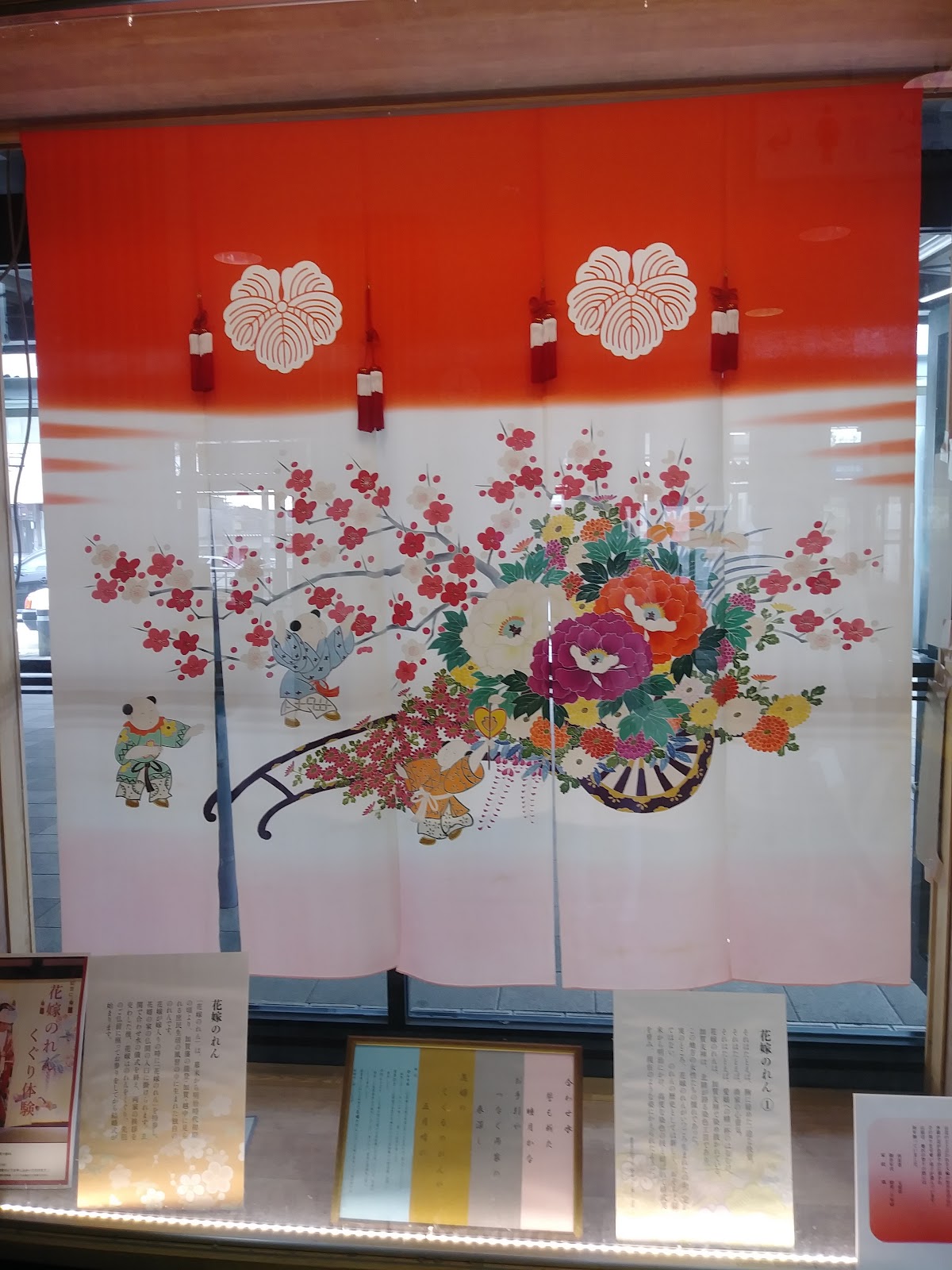 所謂的暖簾是古代能登藩地區的一個習俗,當女兒要出嫁時,娘家要送給夫家印有家徽和象徵祝福花鳥圖案的「花嫁暖簾」做為嫁妝。當新娘嫁入夫家的當天,要穿過掛起的暖簾即為正式入門了。