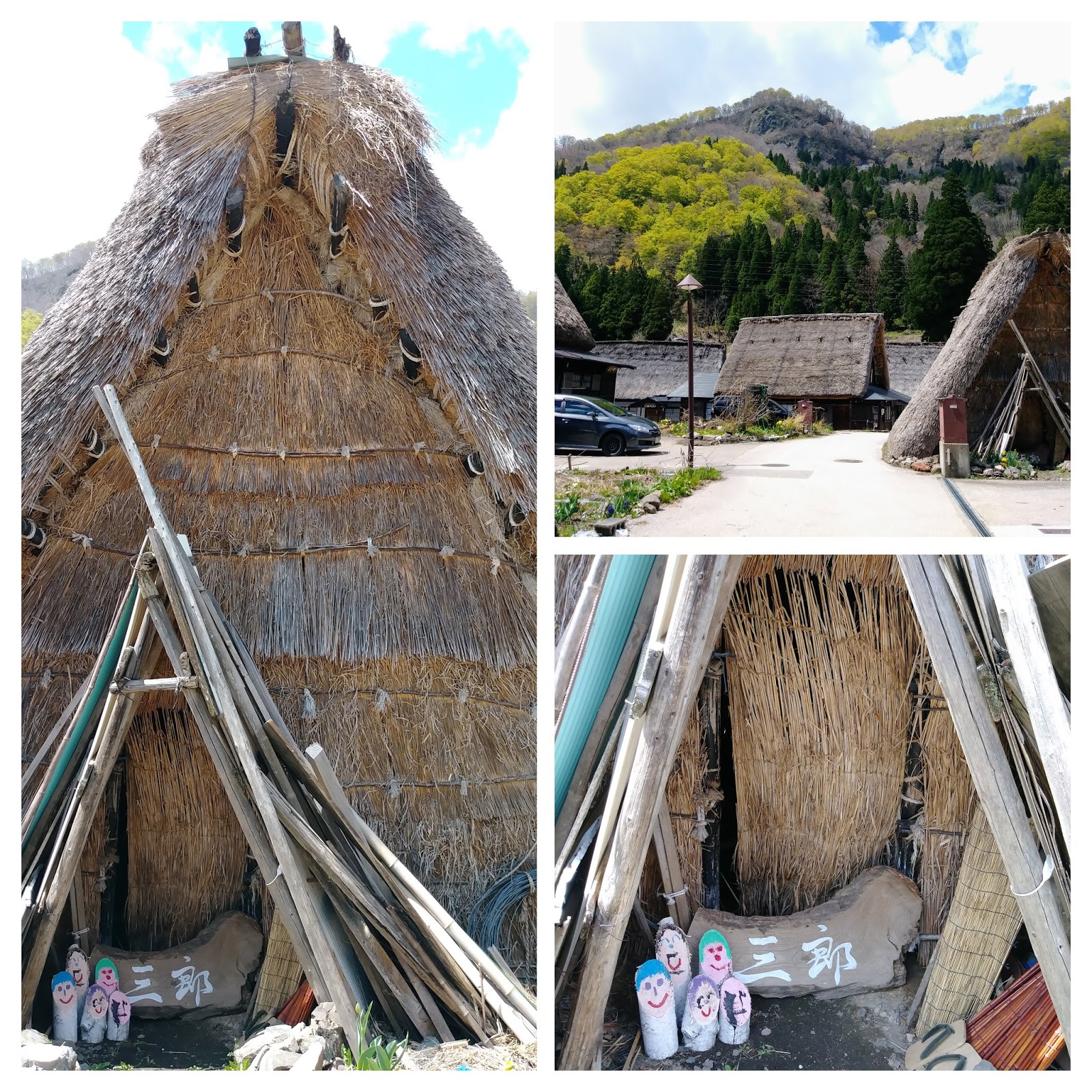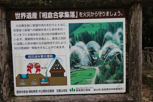 這裡是禁止吸煙的,也不許有任何的煙蒂丟在地上。茅草屋頂很容易燃燒,他們也做了灑水設施,以防火災一發不可收拾。這些合掌屋大多100到200年之間,但最老的聽說已有400年的歷史了。這些木造的房屋,沒有任何的鐵釘,全部是利用卡榫銜接。茅草屋頂則是每15到20年要重新整修。