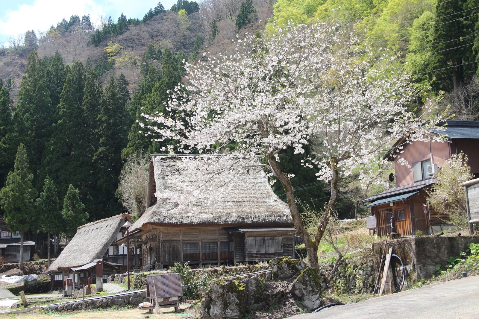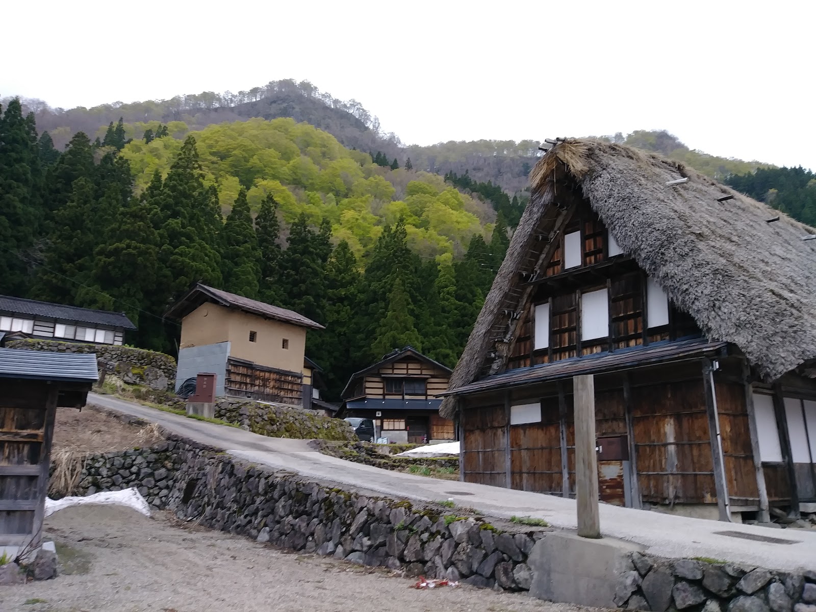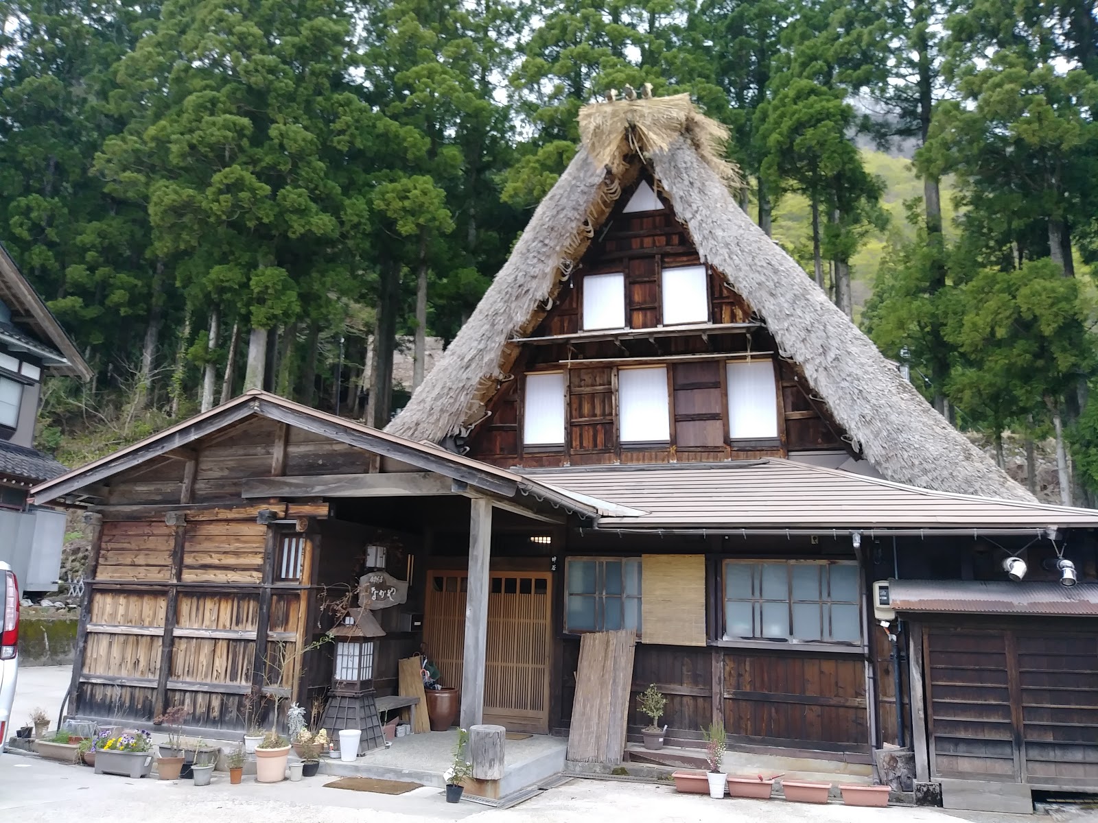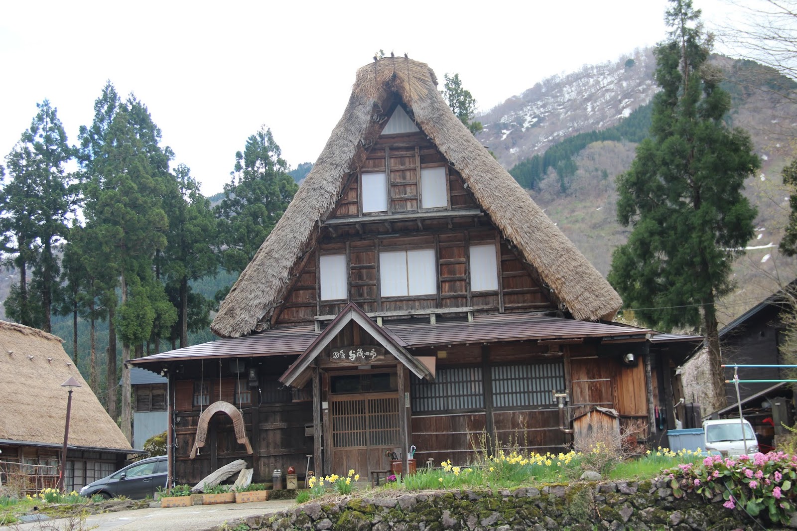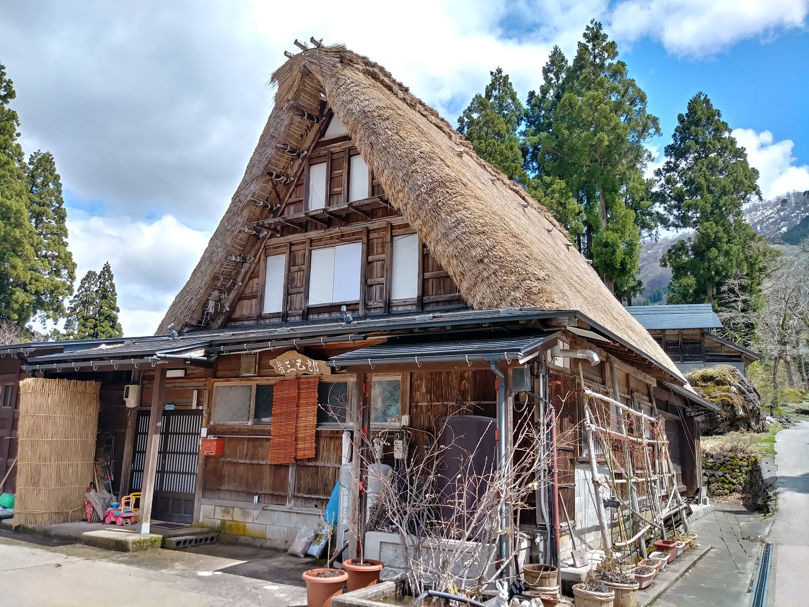 這間最大的合掌屋,週圍的房屋,都已經現代化了。有的改為瓦片屋頂,有的甚至已不再使用木屋了。