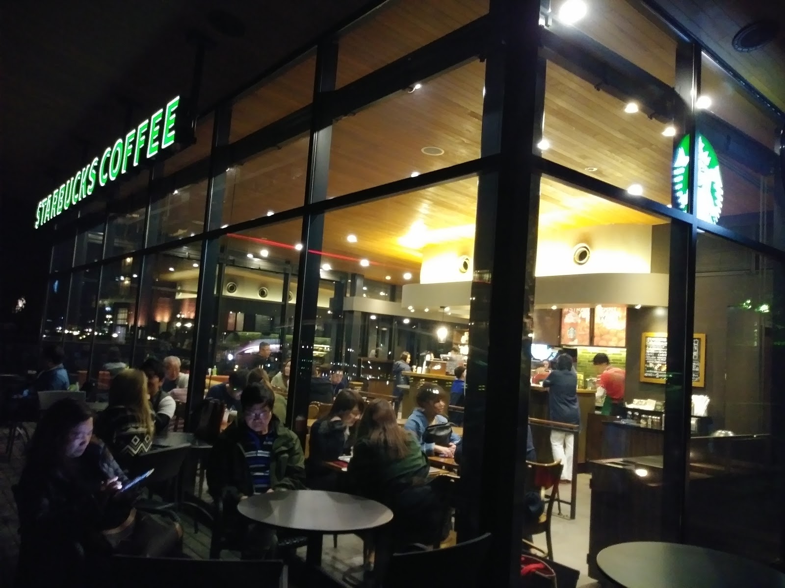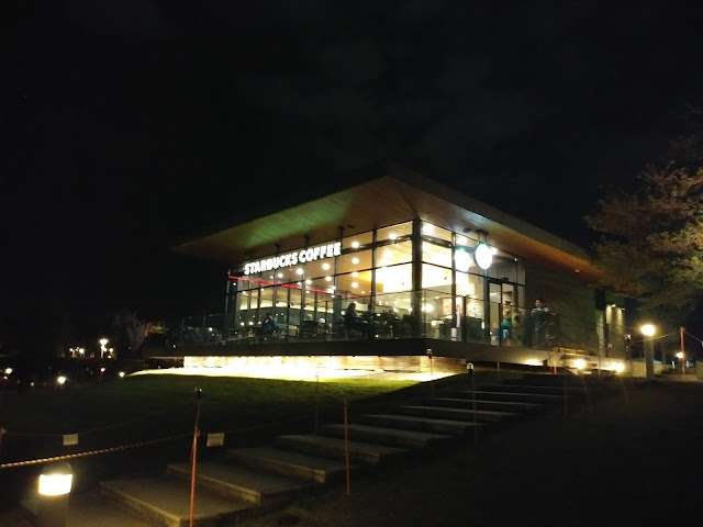 星巴克就在一排夜櫻的旁邊,今天並不是假日,也不是週末,一樣座無虛席,一位難求。