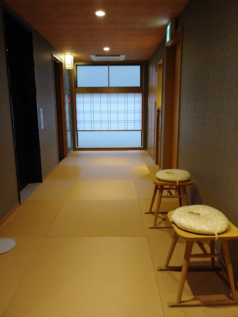 這個飯店的特別地方是,在大廳登記入住後,要前往自己的房間時,要先在大廳旁的鞋櫃區,找一個櫃子將自己的鞋子放入鎖上,進入飯店是不能穿鞋,但是可以換上飯店提供的拖鞋。在我們換鞋的同時,工作人員會將我們行李箱的輪子擦乾淨。他們在清潔的態度上,真的另人傻眼,好仔細。