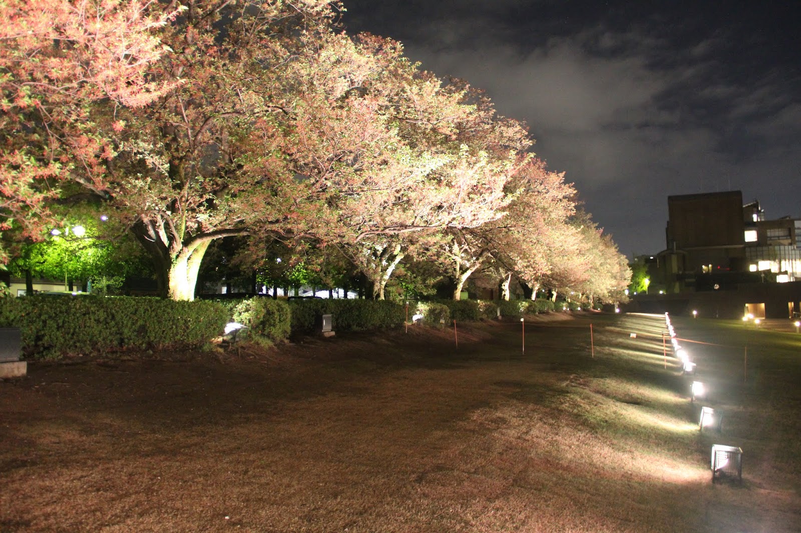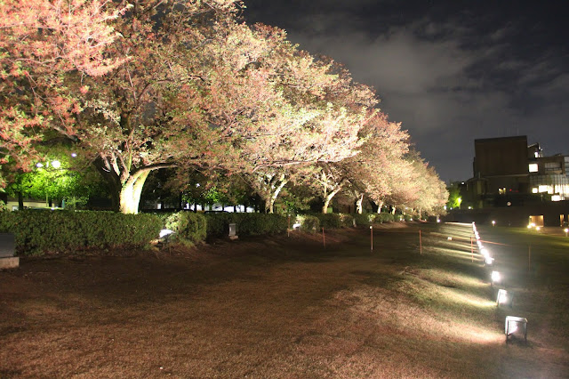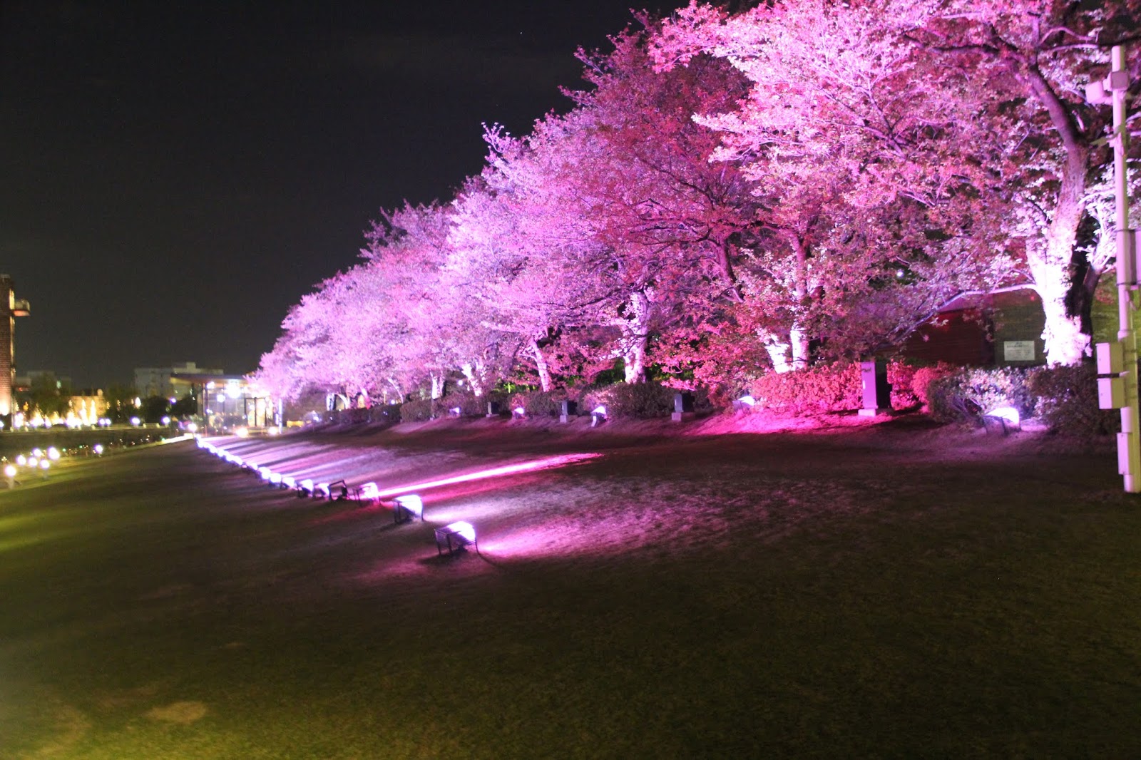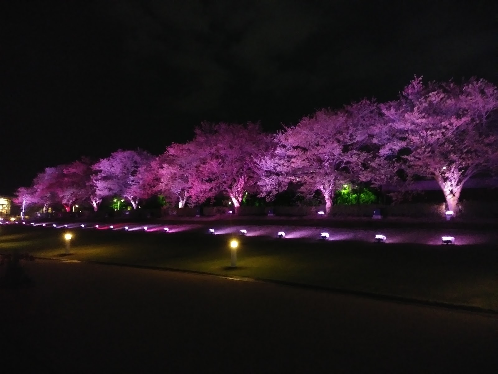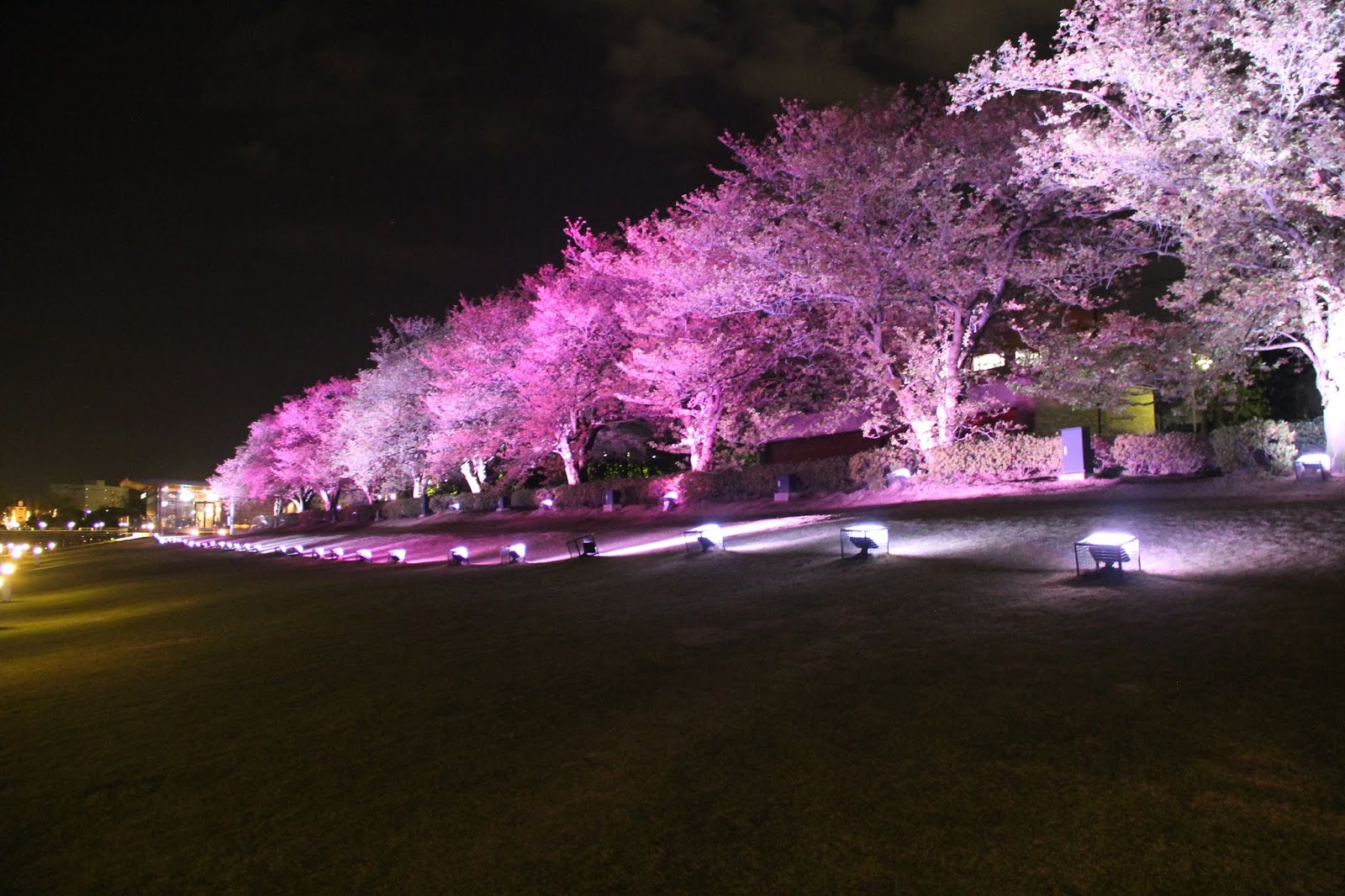 夜櫻會隨著燈光變換顏色