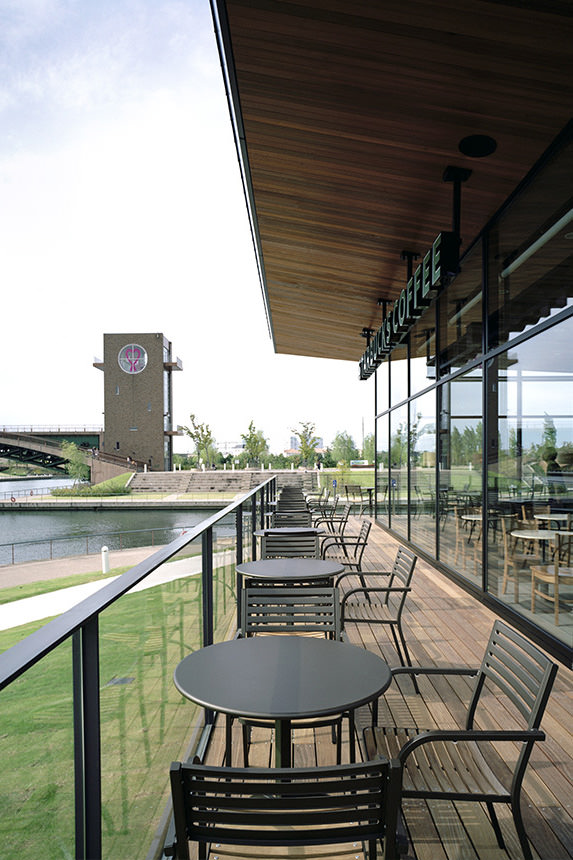 咖啡館的設計是由三面玻璃牆圍繞著,開放的空間,加上戶外一整排的座位,就感覺像在船的甲板上一樣, 享受著水邊的景色。 (圖片來源 : ana-cooljapan)