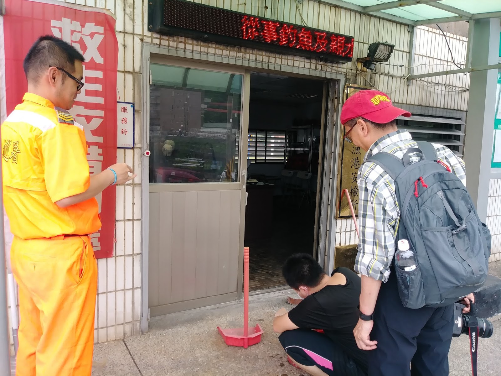 在這小漁港裡,還發生了一件很有人情味的小插曲。我們因為尿急,就近並沒有公廁,於是問了南雅漁港安檢所,兩位海巡署警員正在和水泥補東西。他們很大方的讓我們使用他們唯一的浴室兼廁所,並且還和我們聊聊天,濃濃的人情味。