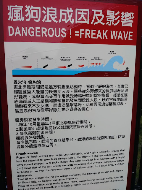 鼻頭角與龍洞灣是許多釣客喜愛來的地點之一。但是在東北季風期,經常隱藏了危機 - 瘋狗浪。從外表看似平靜的海面,會忽然來一個其實已累積於海平面內的長週期大浪,讓人措手不及逃離。父親的一位朋友,就是因為如此而喪失生命,真的令人難過。