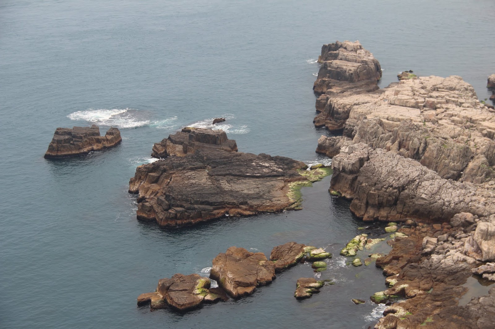 鼻頭角的地形為岬角,突出在藍色的浩瀚大海中,在海域地理上極為重要。鼻頭角以北的海域屬於東海,而以南屬太平洋。 站在鼻頭角的最突出點上,往右看是太平洋,往左看是東海, 雖然我看不出他有什麼分別, 但是在軍事戰略位置上,他可是錙銖必較。