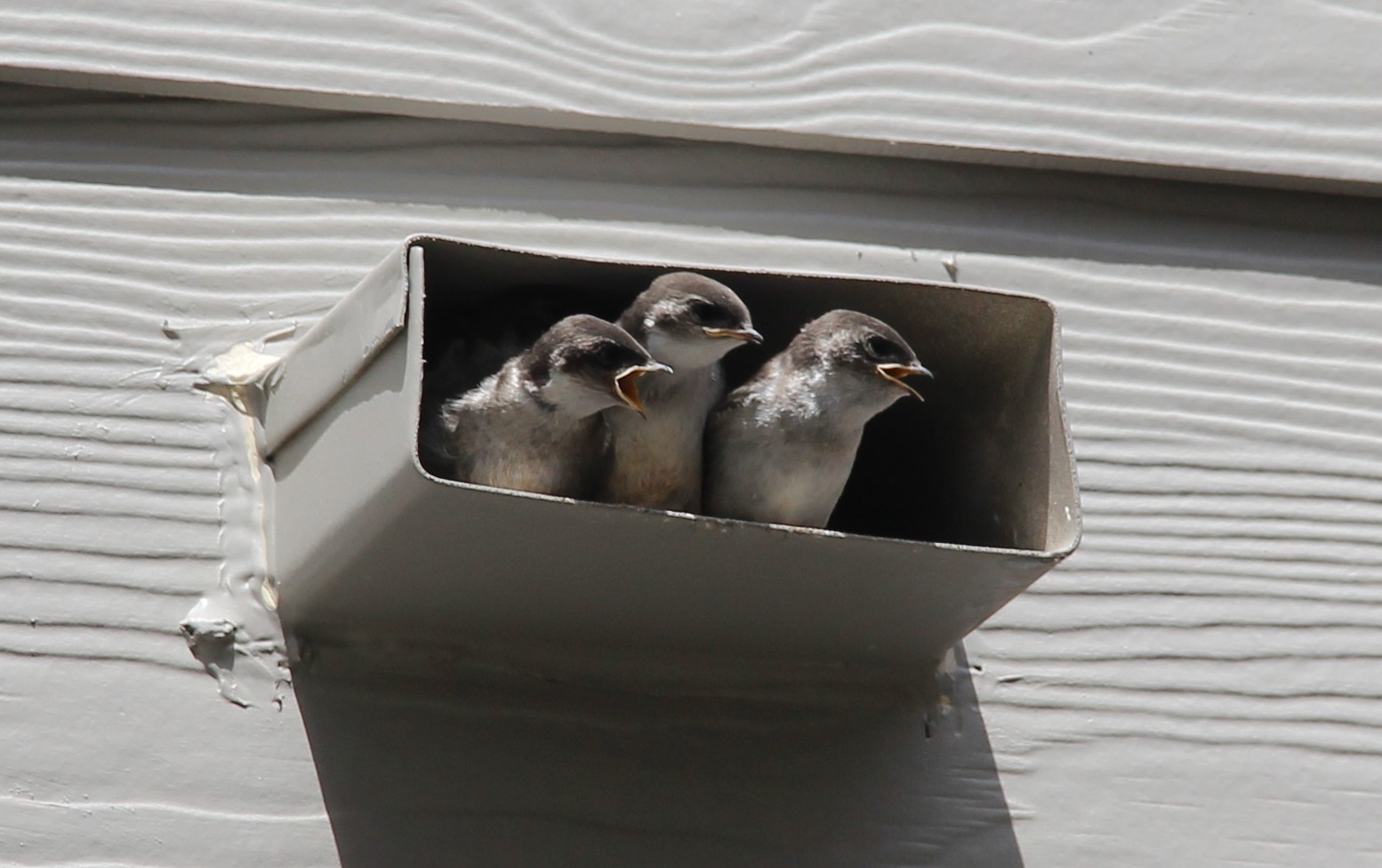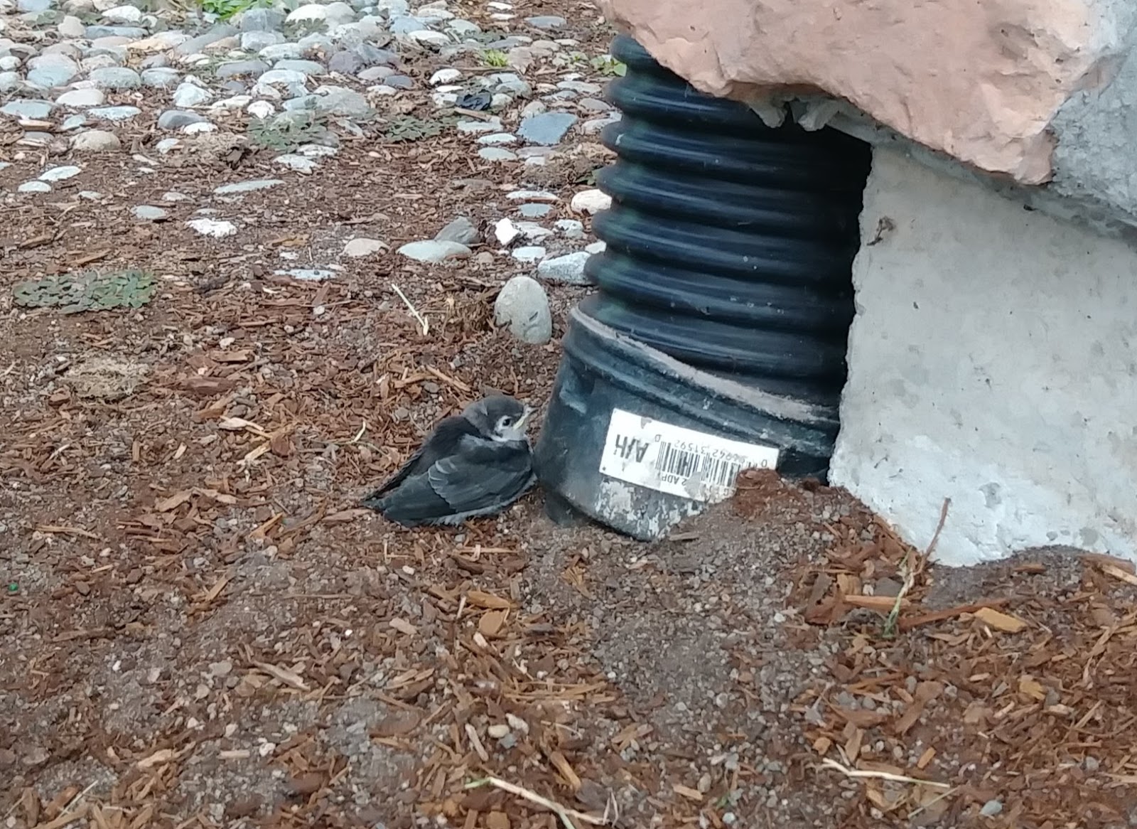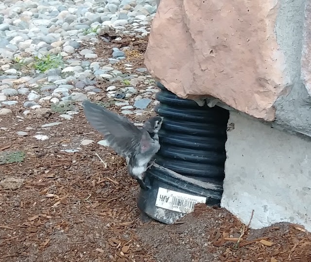 北美的燕子大多為家燕 (barn swallow),這是最常見普遍品種的燕子,並且分布全世界各大洲。家燕通常會在人類的建築物屋簷下銜泥築巢,根據專家說,一對燕子要來來回回的飛行1200次,才能築一個巢。我們家這對燕子實在太聽明了,在這沒有水的排水孔裡當成窩,既省去銜泥築巢來回1200次忙碌的飛行,又是一個隱密而安全,沒有人打擾的好窩。