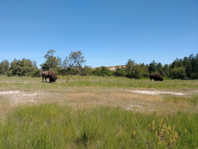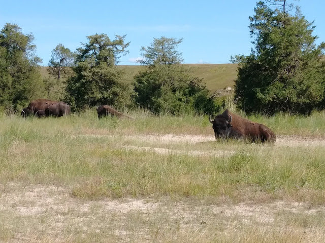 我們原本是要參觀在加拿大沃特頓國家公園的野牛保護區,沒想到去年森林大火,野牛保護區大遷移。我們去時,保護區空空如也,一隻野牛也沒有,不曉得遷移至何方。而這個建於1908年,美國最古老的野牛保護區之一,不費吹灰之力,竟然在回家的路上,出現在我們面前,當然要前往參予一下。