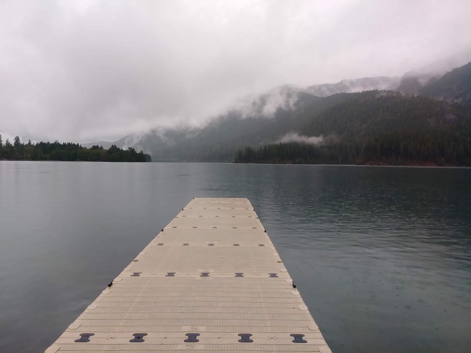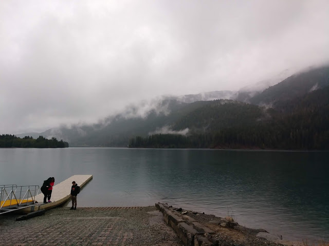 位於水泥城北方16公里的貝克湖,可以划船、釣魚和露營,只是我們到的時候煙雨濛濛,只有小貓兩三隻。