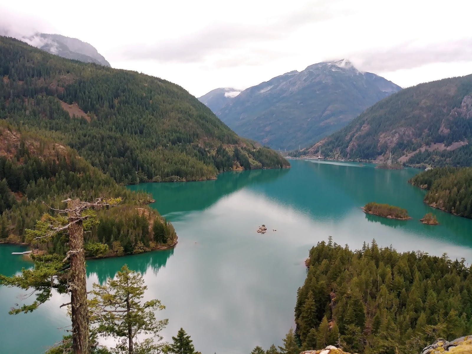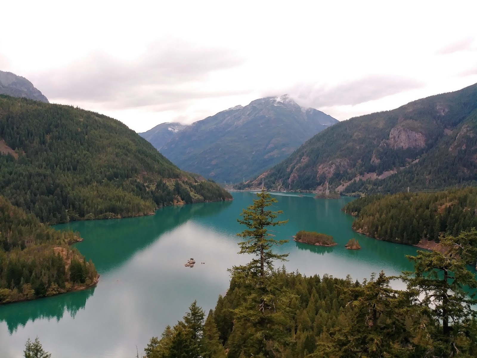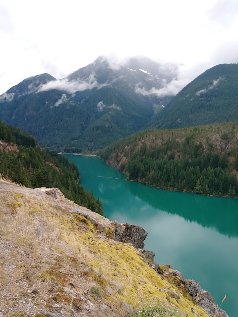 這裡景色最令人讚嘆的,非惡魔湖 (Diablo Lake) 莫屬。奇怪,這麼美的景色為什麼叫惡魔。魔鏡,魔鏡,誰是世界上最美的湖?