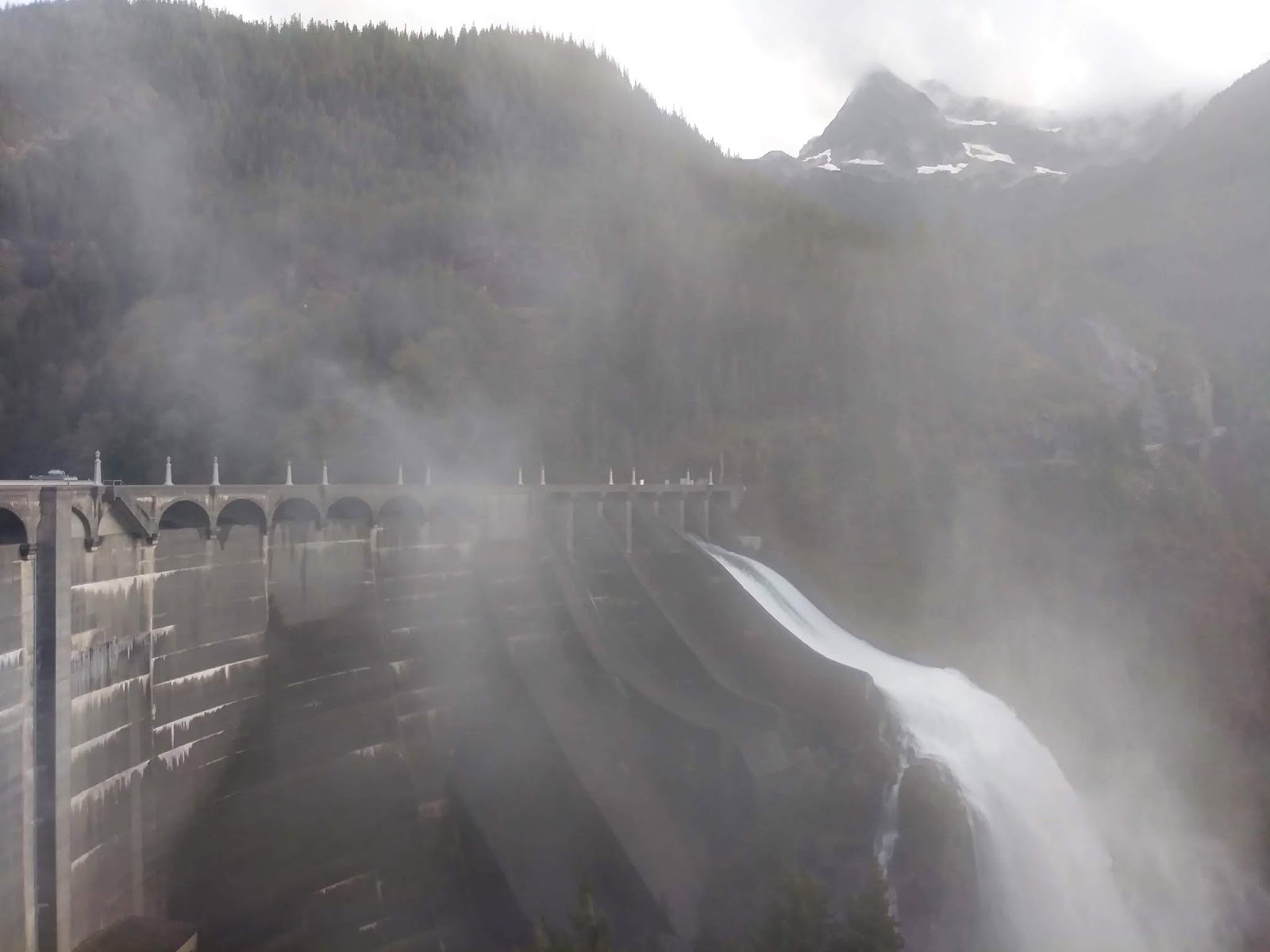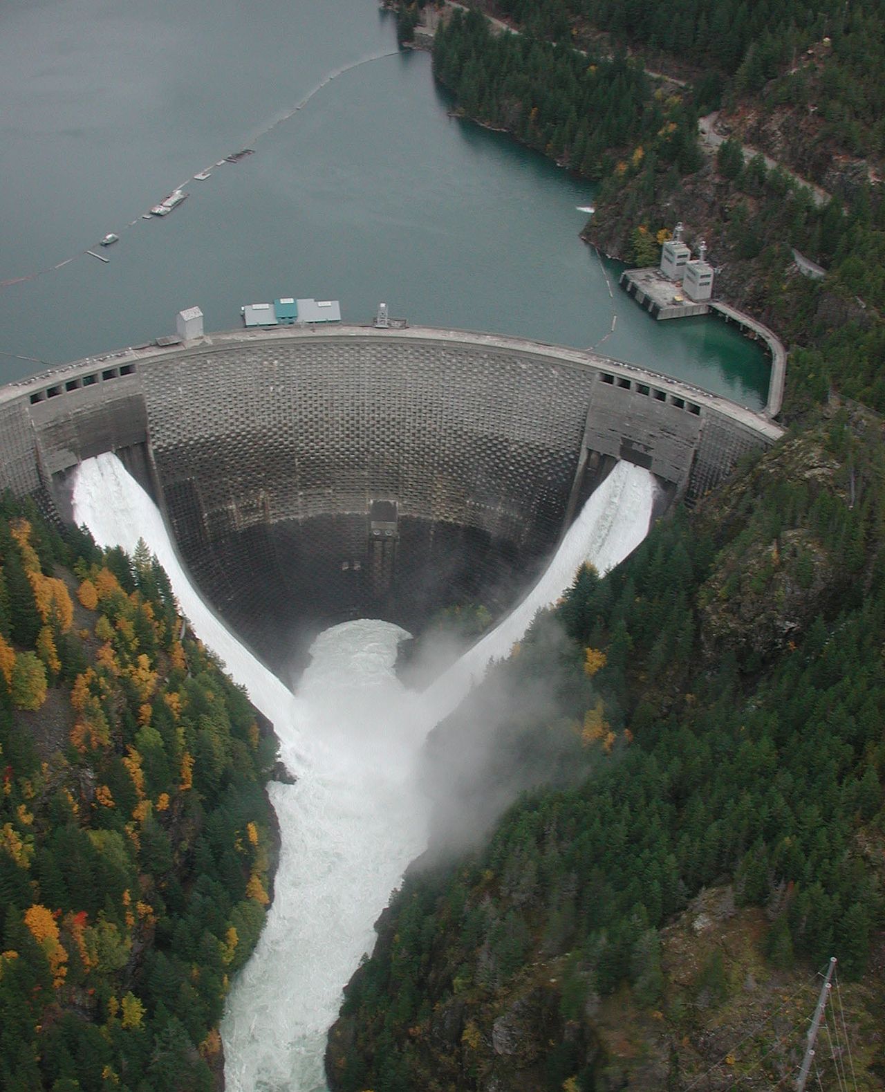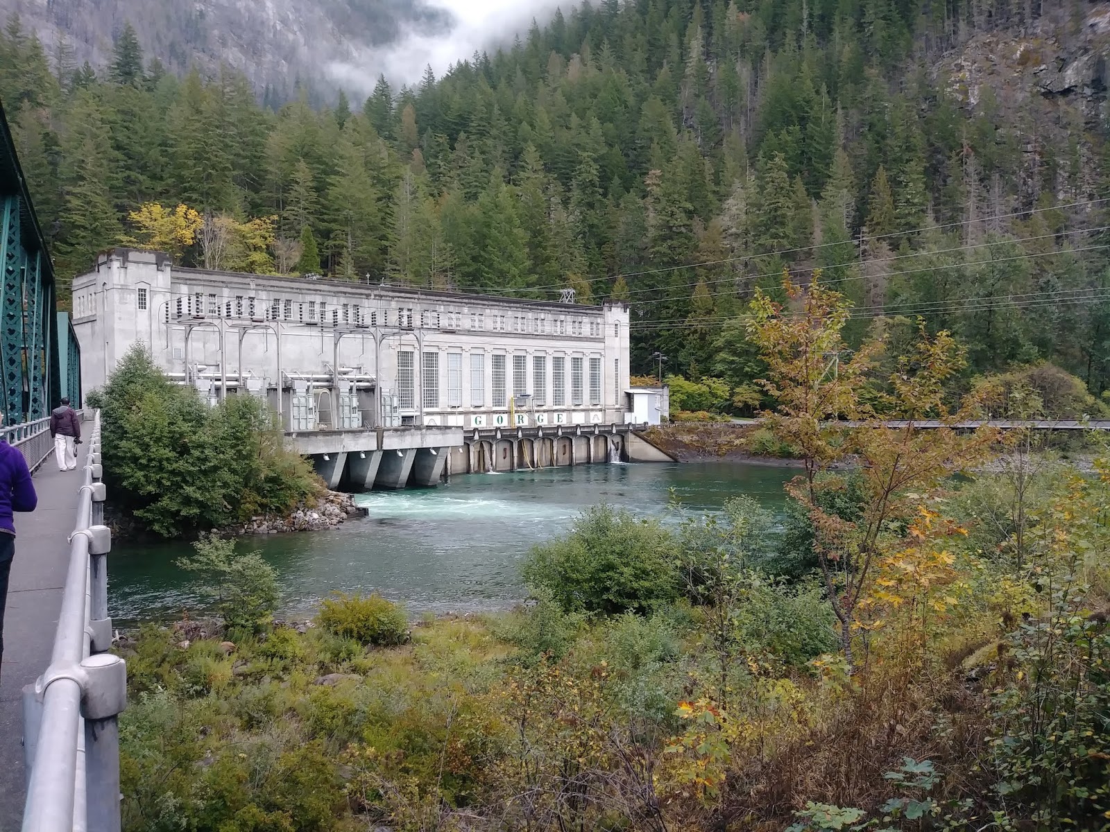 在流經北瀑布國家公園斯卡吉特河上,短短的40英里之內就有三座水壩: 峽谷水壩 (Gorge Dam),惡魔水壩 (Diablo Dam),和羅斯水壩 (Ross Dam)。這三個水壩提供了約92%的西雅圖用電量。