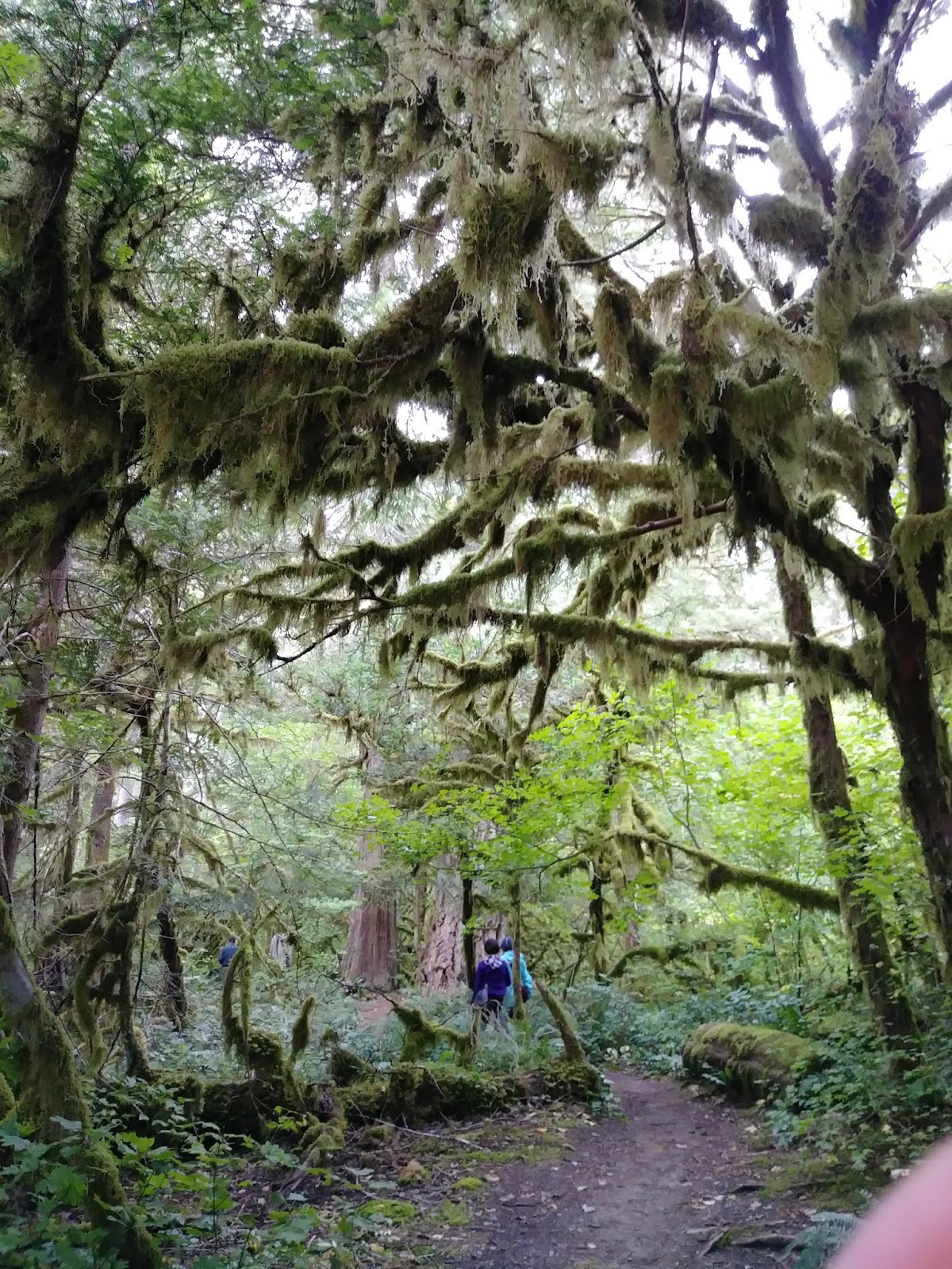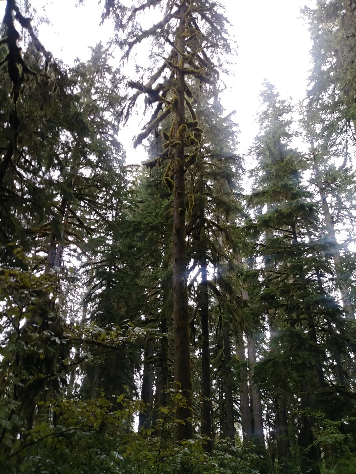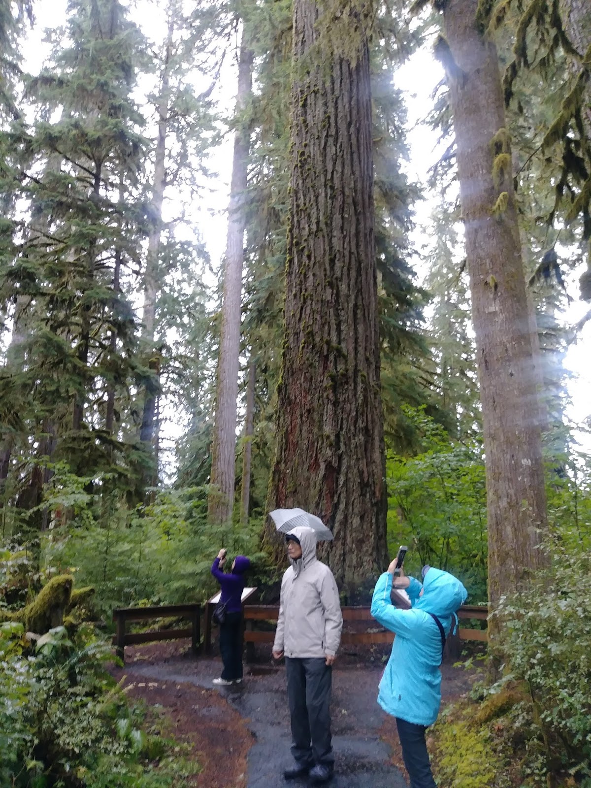 這是個佷輕鬆的步道,周圍全是高大的巨木,包括道格拉斯冷杉和西部紅柏。每個人為了能照到樹尖,拼命的拉長脖子往上看。