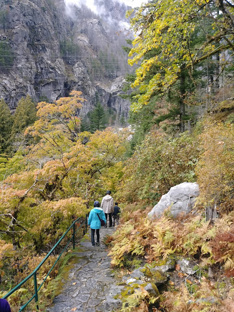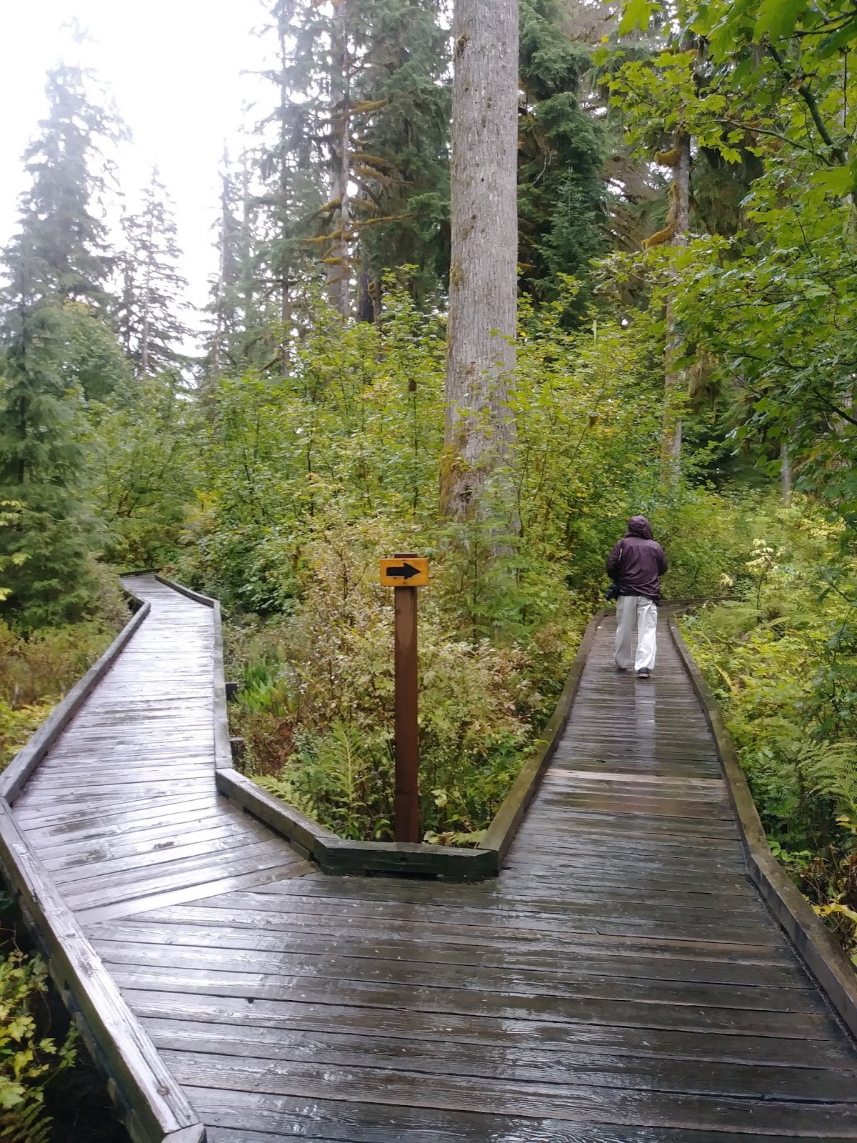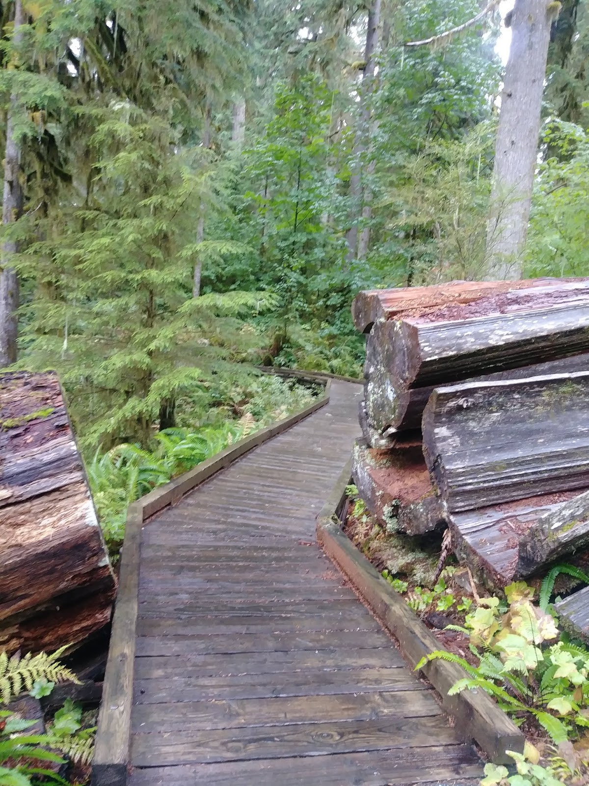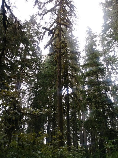 這是個佷輕鬆的步道,周圍全是高大的巨木,包括道格拉斯冷杉和西部紅柏。每個人為了能照到樹尖,拼命的拉長脖子往上看。