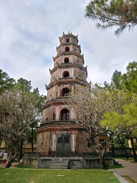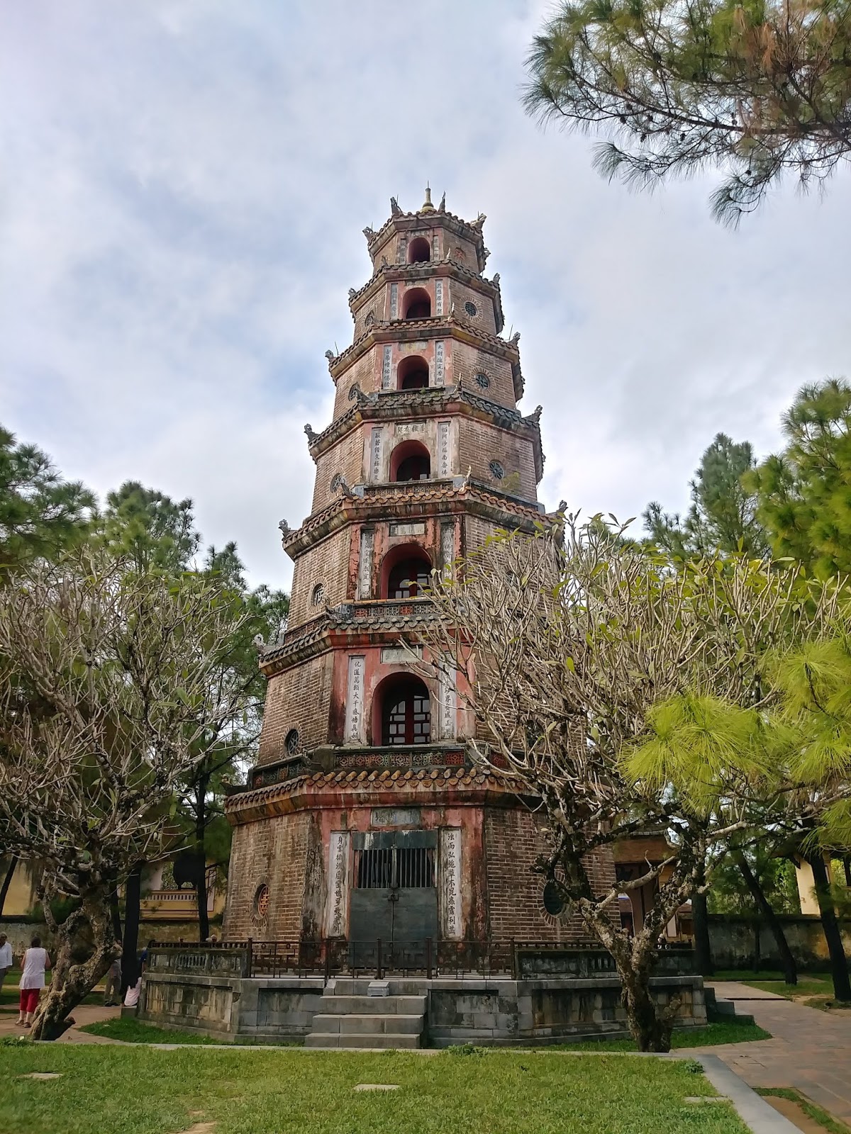 六角形的寶塔 (行前曾經查詢資料,甚至是資料大全的維基百科和有名的旅遊書籍如 Lonely Planet 都誤將這座六角形的寶塔寫成八角形) 有7層,每一層供奉著不同的佛像,是越南最高的寶塔,也是順化市的象徵圖像。