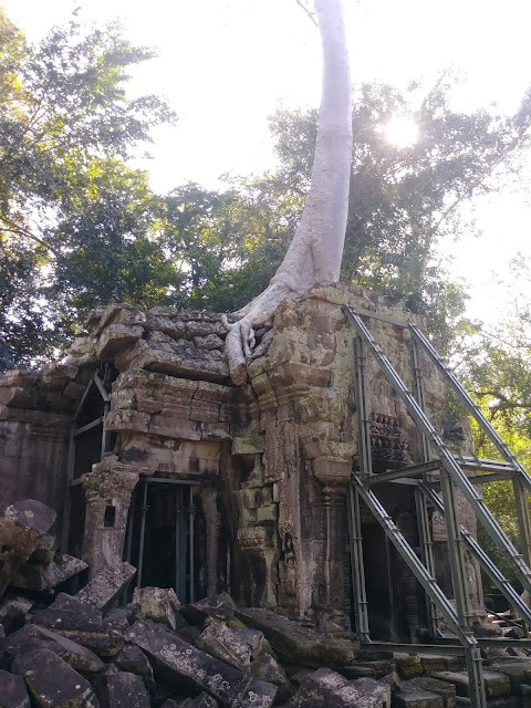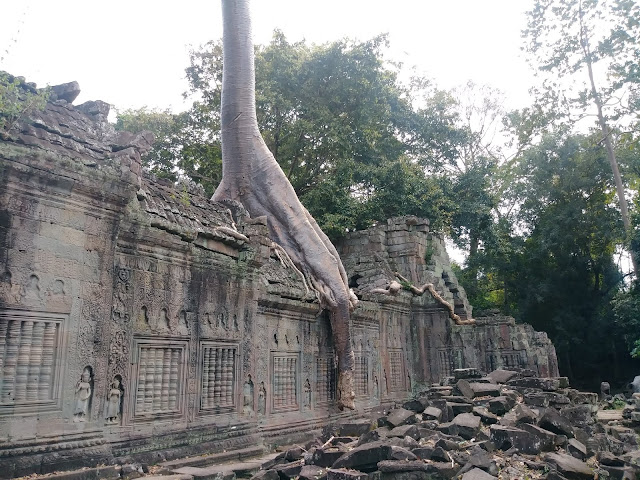 聖劍寺大多數的建築都未恢復原狀,和塔普倫寺一樣,負責維修的 World Monuments Fund 想儘量保持原貌,不要拆除,所以也就讓那些生根蒂固的大樹與古建築共存。