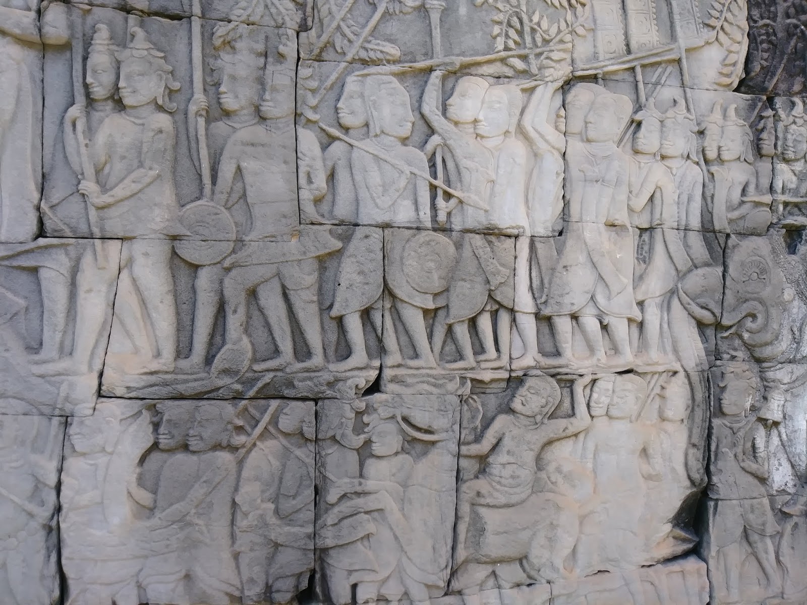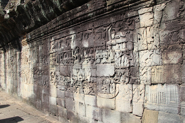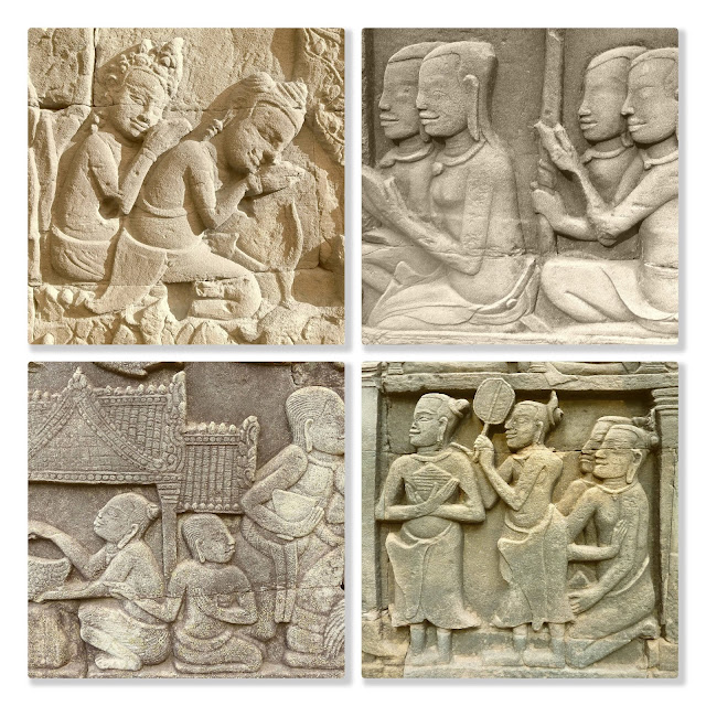 巴戎寺的浮雕壁畫,除了刻畫吳哥王朝歷史和戰爭的情節,她還生動地刻畫著老百姓的生活情景。