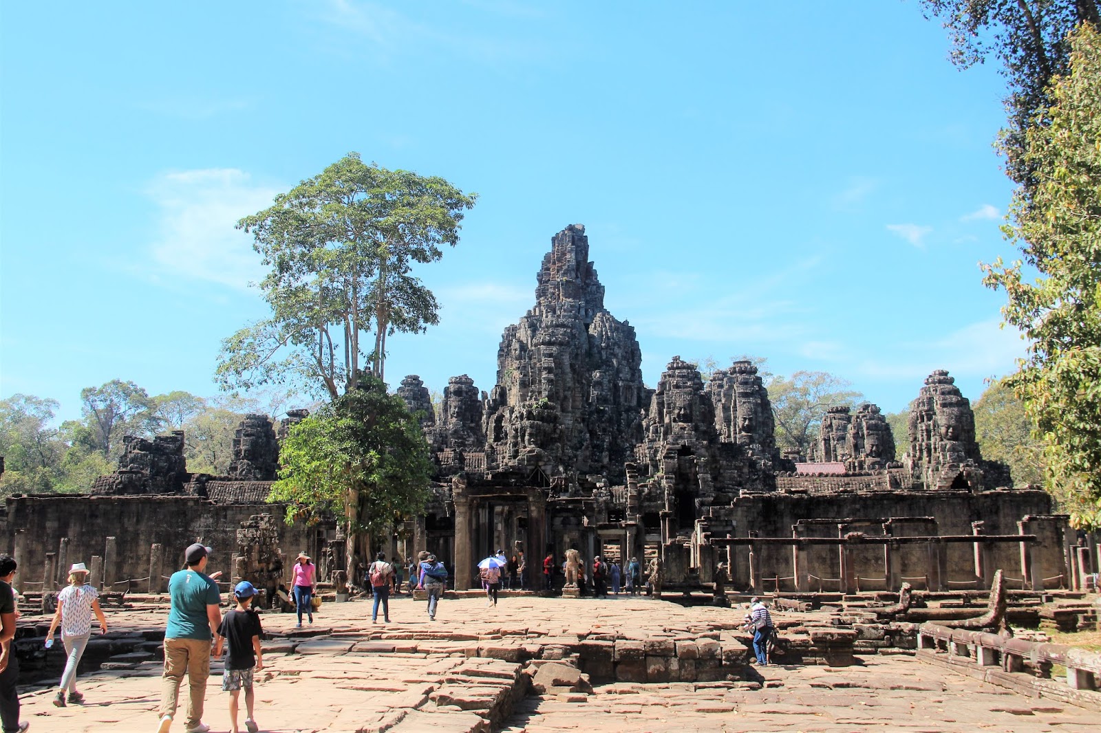 大吳哥城裡的巴戎寺可以說是「微笑高棉」的代表作。闍耶跋摩七世修建了吳哥唯一的佛教寺廟,位於吳哥城的中央。巴戎寺有54座石刻佛塔,每座塔的四面各有一個微笑面像,總共有200多個雕刻頭像矗立在天際線上,非常的壯觀,原來這就是「微笑高棉」。