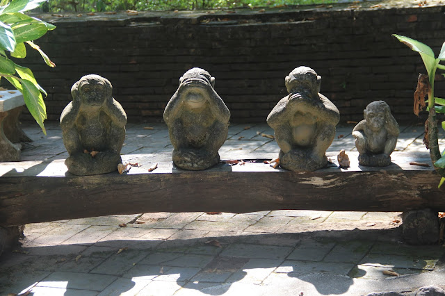 悟孟寺每個星期天下午3點至6點有英文講道,寺廟裡住著許多由國外來此靜修,參加講座的人。我們遇到從歐洲來此靜修的二位女孩,5天的課程,他們一天只能吃一餐,其他時間就是上課和冥想。寺廟走道還有一些泰文英文的格言。