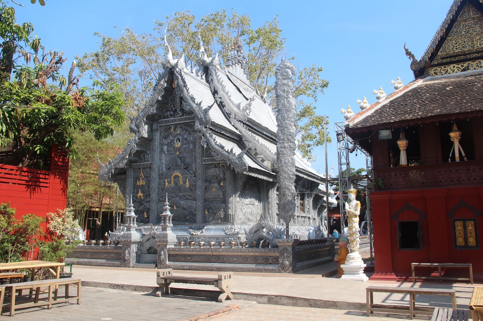 位於清邁的銀飾區 Wualai,寺廟並且附設銀飾工藝學校。白銀寺有輛銀器打造的小型車開放給民衆。可惜的是,按照蘭納舊有的傳統,白銀主殿是不允許女性進入的。
