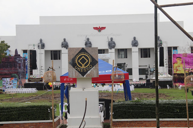 廣埸內正在為當天的節慶活動做準備,正門上方是6位大城王國的國王雕像,還有一個被聯合國教科文組織列為世界遺產的石牌。