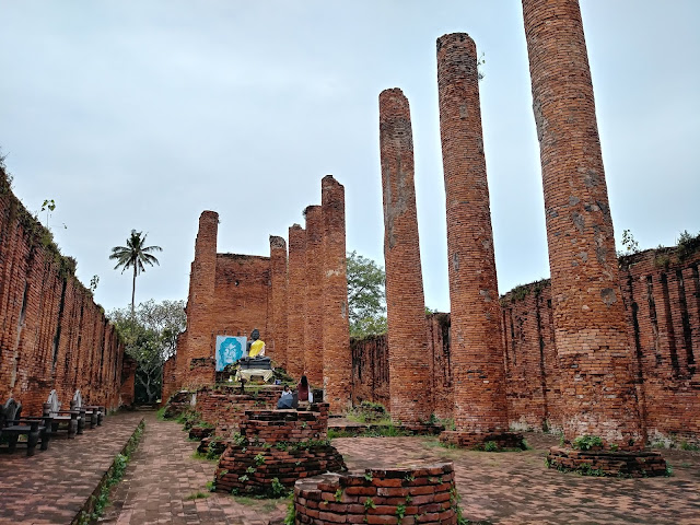 這間寺廟並不在大城歷史遺蹟古城裡面,而是在古城的外圍。這座寺廟建立的時間並不清楚,可能在大城被建立之前就存在了,但在緬甸軍入侵後也被破壞殆盡,後來陸續整修一部份,並且蓋了新的寺廟,形成一個新舊並存的特殊寺廟。