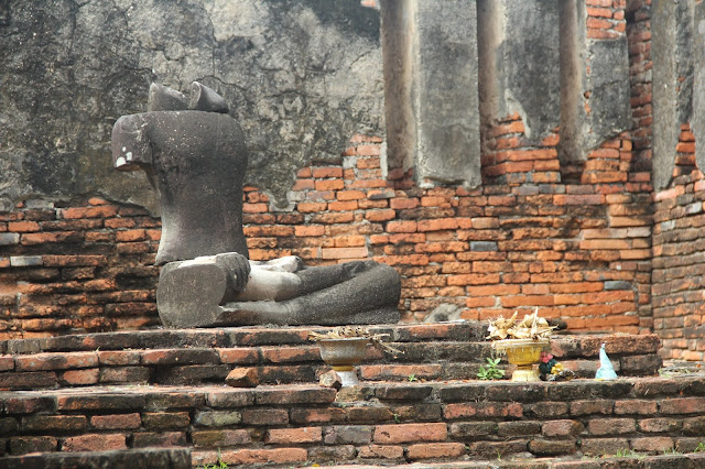 緬甸軍入侵時,大舉砍下寺廟石刻佛像的頭,瑪哈泰寺佛像遺蹟大多為沒有佛首的佛像。
