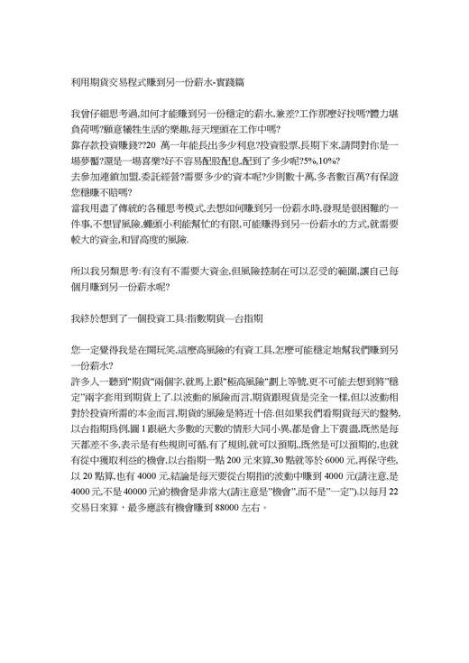 利用期貨交易程式賺到另一份薪水-實踐篇1