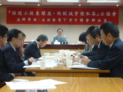 許多公司先減資後私募增資,小股東被稀釋股本後,還要面對被壓低的股價,權益一再被踐踏,而減資再洽特定人私募增資,也往往形成圖利特定人,進行利益輸送及大股東自肥的竅門。為保護投資大眾,並健全資本市場,丁守中提案修正證券交易法第四十三條之六,以杜絕此一弊端。並於99.11.19召開公聽會,邀集經濟部、金管會、證券交易所、證券投資人及期貨交易人保護中心,與多位學者針對公司減資後私募議題進行討論。大家均一致贊同光是靠金管會頒布私募注意事項及事前審查,拘束力不夠,支持丁守中的證交法第四十三條修正案。該修正案也正巧在99.11.19當天由立法院院會交財政委員會審查。
