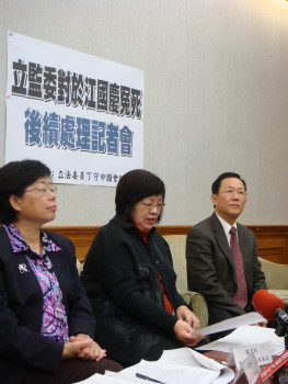 二、丁守中針對江國慶冤死案,陳肇敏竟然為自己喊冤。丁守中指出事件發生在民國85、86年,軍事長官對軍事審判有核可權與覆判權。依當時軍事審判法第57條規定「各級軍事審判機關軍事檢察官,受該管軍事長官之指揮、監督」,陳肇敏違法指示反情報人員違法刑求取供,又於85年12月17日欺矇監察院之調查,甚至在覆判更審時,陳肇敏又交由原審的三位軍事審判官審理,依當時軍事審判法,軍檢起訴、軍事審判庭一審、覆判兩次判死刑,都是在陳肇敏的指揮之下。陳肇敏事後還重用同一組反情報人員非法刑求逼供桃園基地指揮部彈葯失竊案所謂被告,待警方人贓俱獲查獲真正嫌犯,始揭發真刑求,假破案之真相。陳肇敏不知悔改,竟然還在國防部長任內,對於監委馬以工、沈美真的監院調查,消極不予配合,顯見陳肇敏早知此案為冤死案。對於江國慶冤死案,陳肇敏首當其罪,應依刑法一百二十四、一百二十五條,枉法裁判,濫權追訴處罰罪,因而致人於死者,處無期徒刑或七年以上有期徒刑,政府並應指示特偵組,依刑法八十條追訴權之規定,追訴陳肇敏等一干人犯其罪,並追回退休金、退休俸。